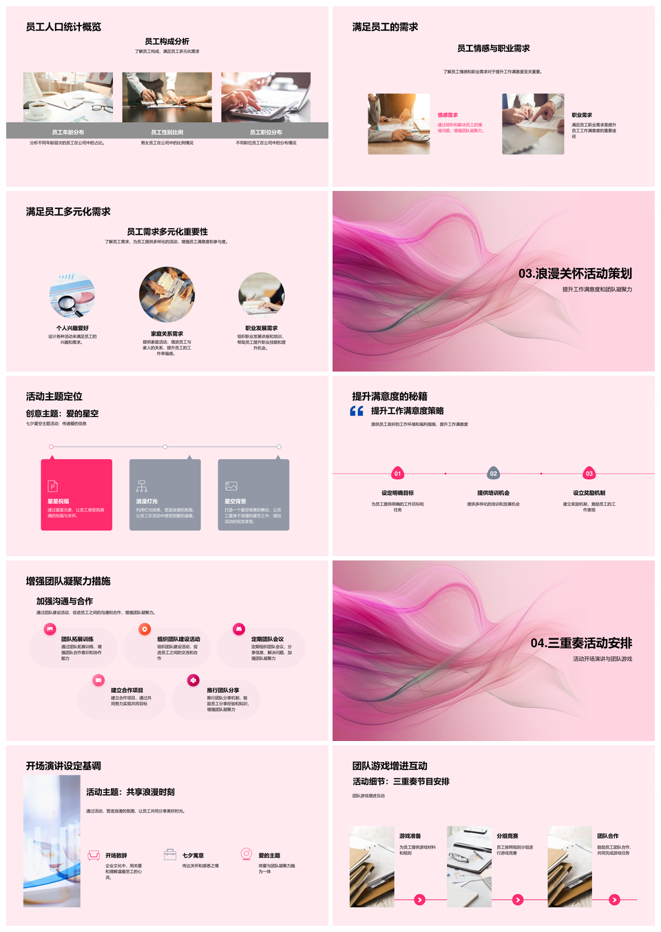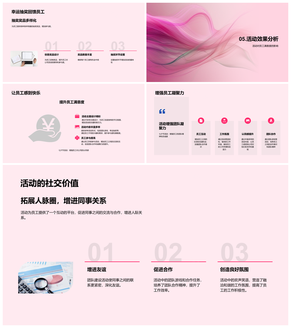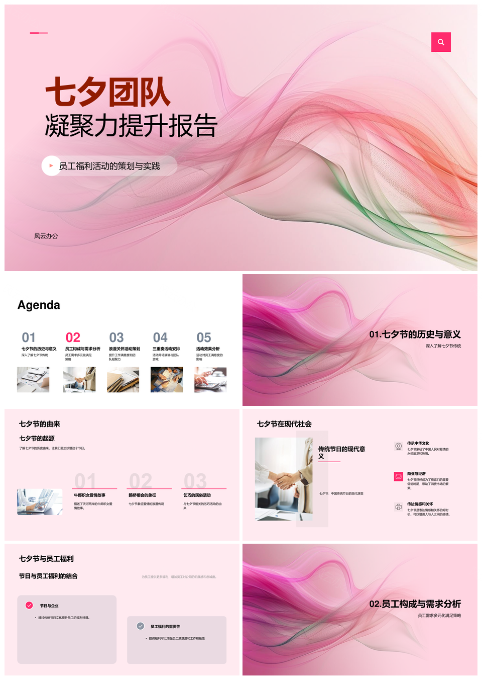 这是一张七夕团队凝聚力提升活动策划福利互动统计报告PPT模板,包含七夕、团队、凝聚力、提升、活动、策划、福利、互动、统计、报告等主题内容,也可用作七夕团队凝聚力提升活动策划、七夕团队凝聚力提升福利互动、七夕团队凝聚力提升统计报告、七夕团队凝聚力活动策划福利、七夕凝聚力提升活动策划互动、团队凝聚力提升活动策划福利、凝聚力提升活动策划福利互动、提升活动策划福利互动统计、活动策划福利互动统计报告、七夕团队凝聚力活动、七夕凝聚力提升活动、团队凝聚力活动策划、凝聚力提升活动福利、活动策划福利统计、策划福利互动报告等PPT场景使用。 风云办公提供的七夕团队凝聚力提升活动策划福利互动统计报告PPT模板,下载格式为pptx,一共23页,作品中文字及图均可以修改和编辑,图片更改请在作品中右键图片并更换,文字修改请直接点击文字进行修改。