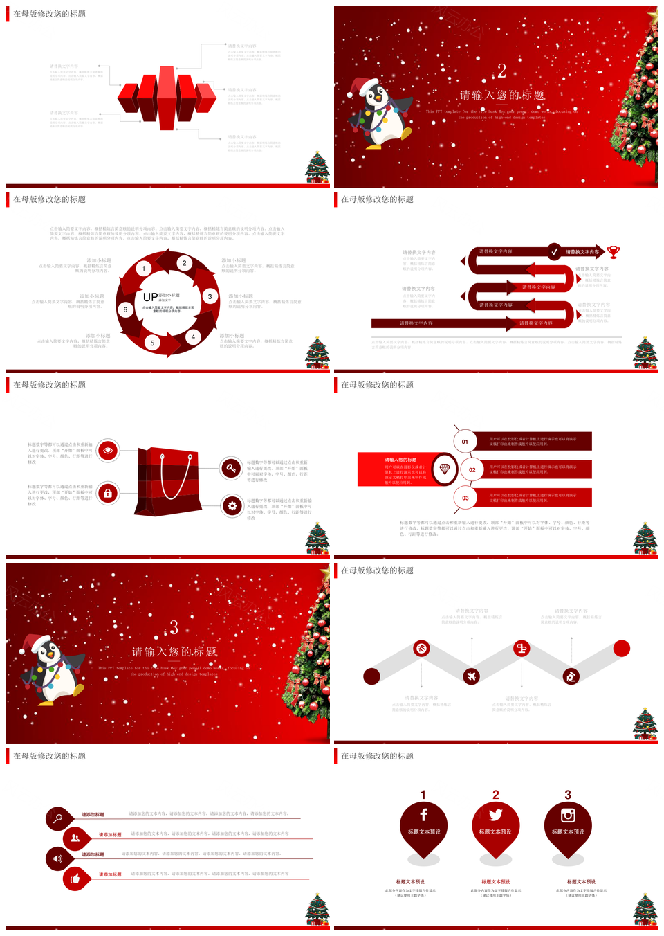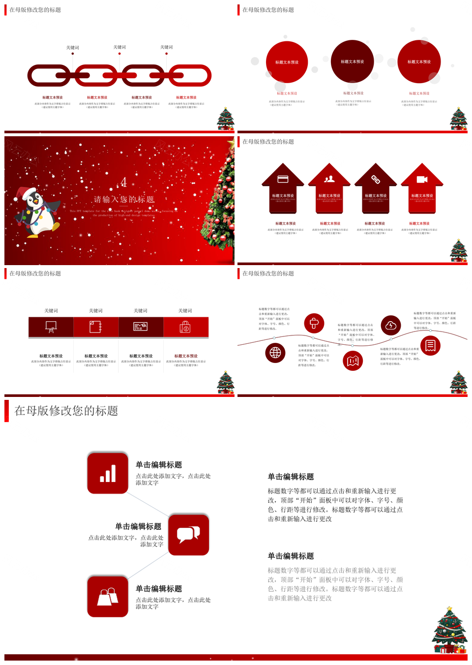 红色卡通可爱圣诞老人圣诞节主题通用PPT模板