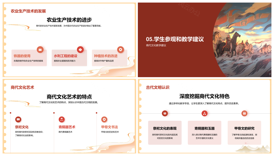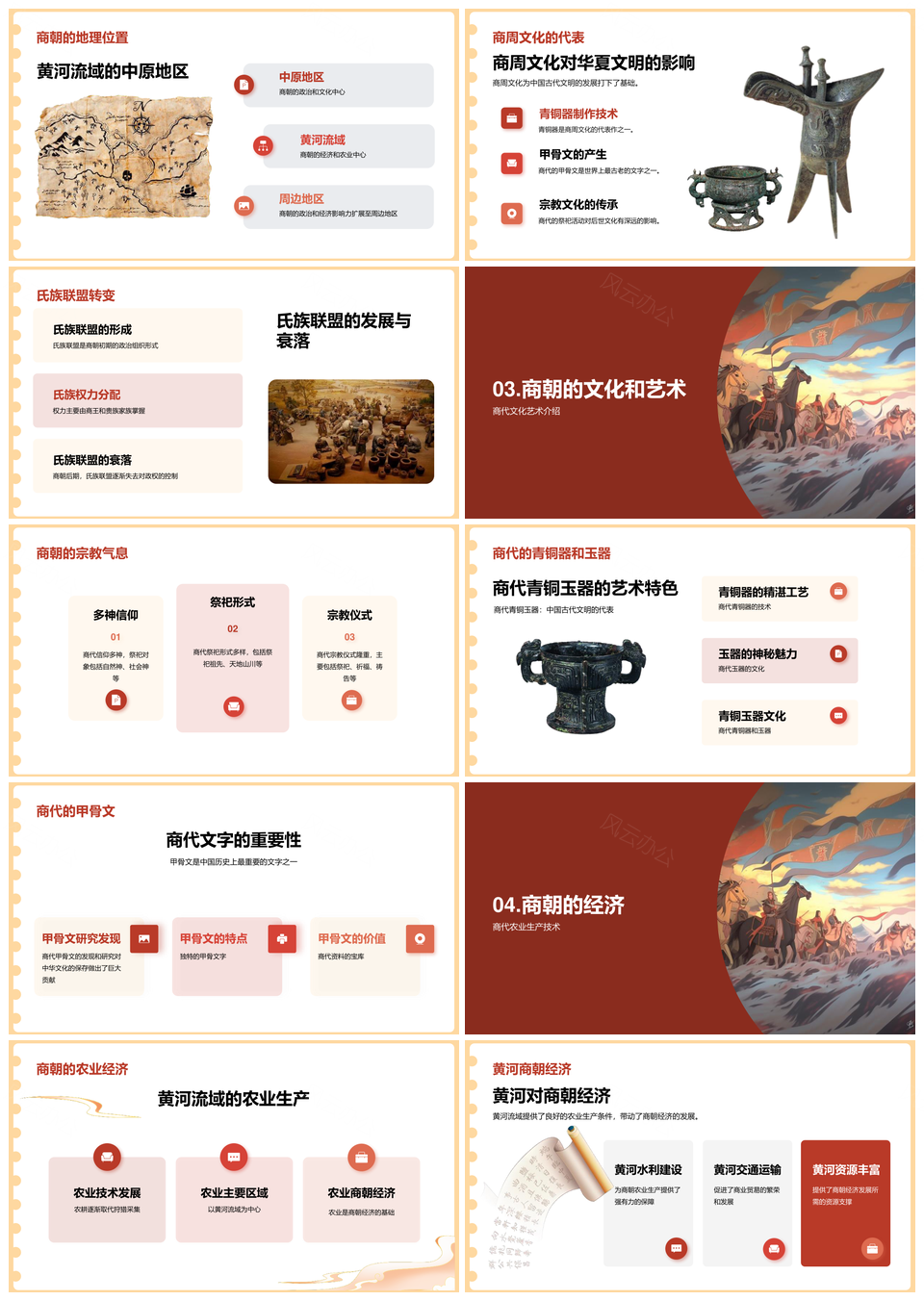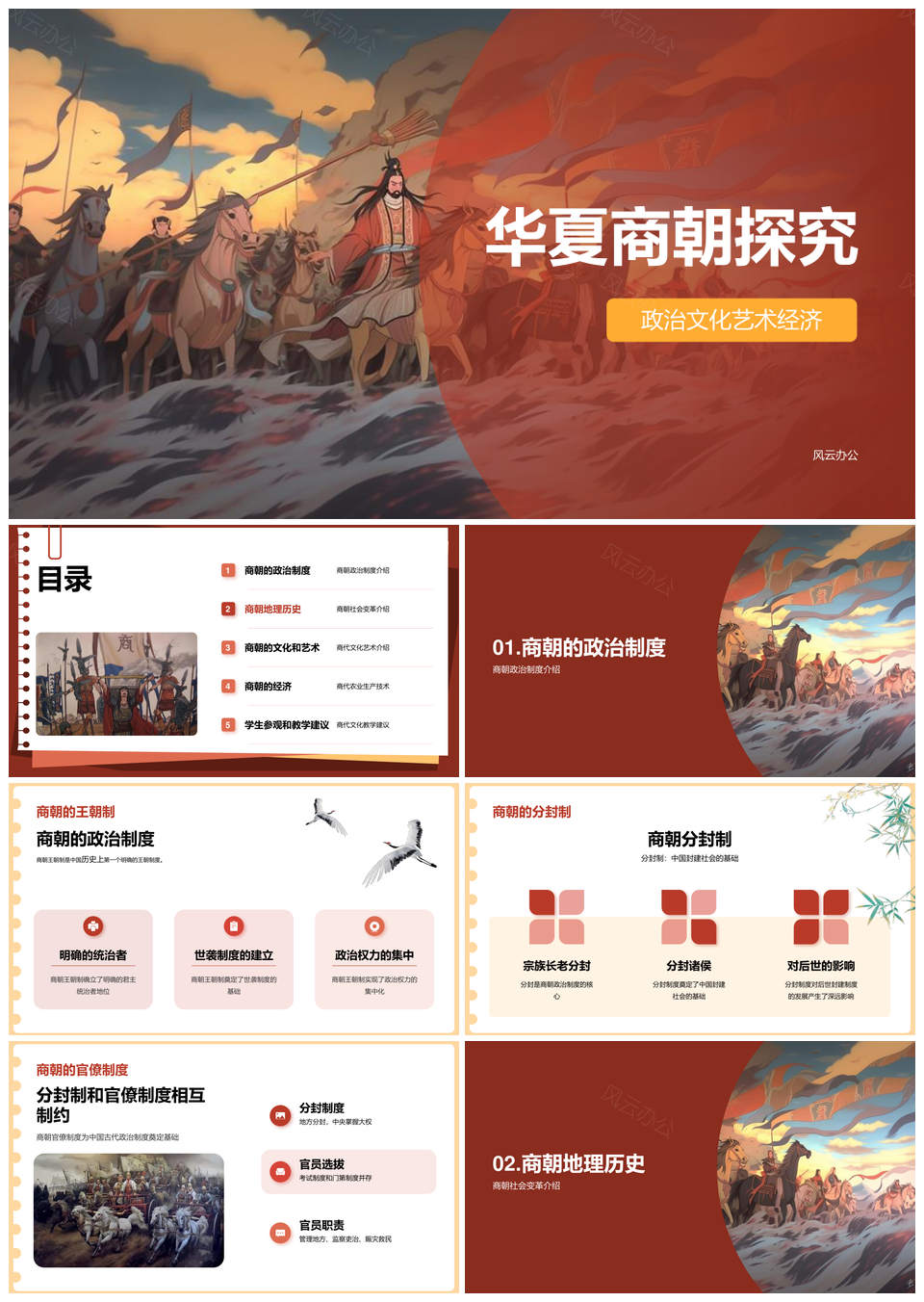 风云办公提供的红色现代商朝历史文化商务教育培训PPT模板,下载格式为pptx,一共22页,作品中文字及图均可以修改和编辑,图片更改请在作品中右键图片并更换,文字修改请直接点击文字进行修改。