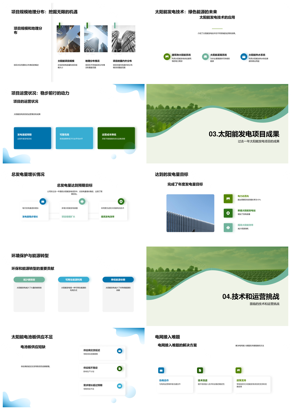 这是一张太阳能工程师年终总结光伏技术挑战突破PPT模板,包含太阳能工程师、年终总结、光伏技术、挑战、突破等主题内容,也可用作太阳能工程师年终总结光伏技术挑战突破、太阳能工程师年终总结光伏技术、年终总结光伏技术挑战突破、太阳能工程师光伏技术挑战突破、太阳能工程师年终总结、太阳能工程师光伏技术、太阳能工程师挑战突破、年终总结光伏技术、光伏技术挑战突破、工程师年终总结光伏、总结光伏技术挑战、光伏技术挑战突破、太阳能工程师、年终总结、光伏技术、挑战突破等PPT场景使用。 风云办公提供的太阳能工程师年终总结光伏技术挑战突破PPT模板,下载格式为pptx,一共24页,作品中文字及图均可以修改和编辑,图片更改请在作品中右键图片并更换,文字修改请直接点击文字进行修改。