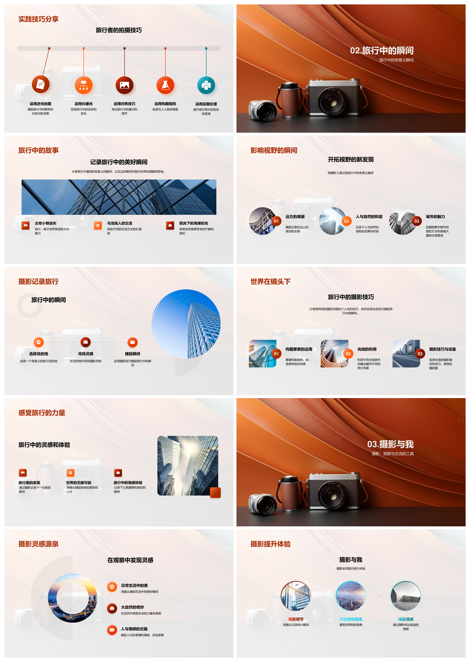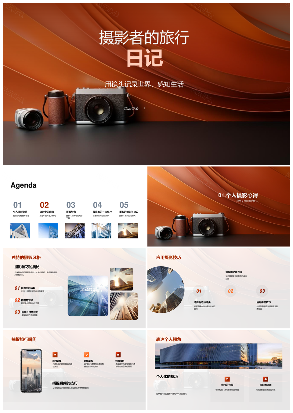 风云办公提供的摄影旅者光影图集风格技巧展PPT模板,下载格式为pptx,一共33页,作品中文字及图均可以修改和编辑,图片更改请在作品中右键图片并更换,文字修改请直接点击文字进行修改。