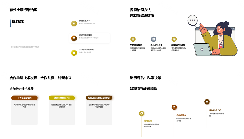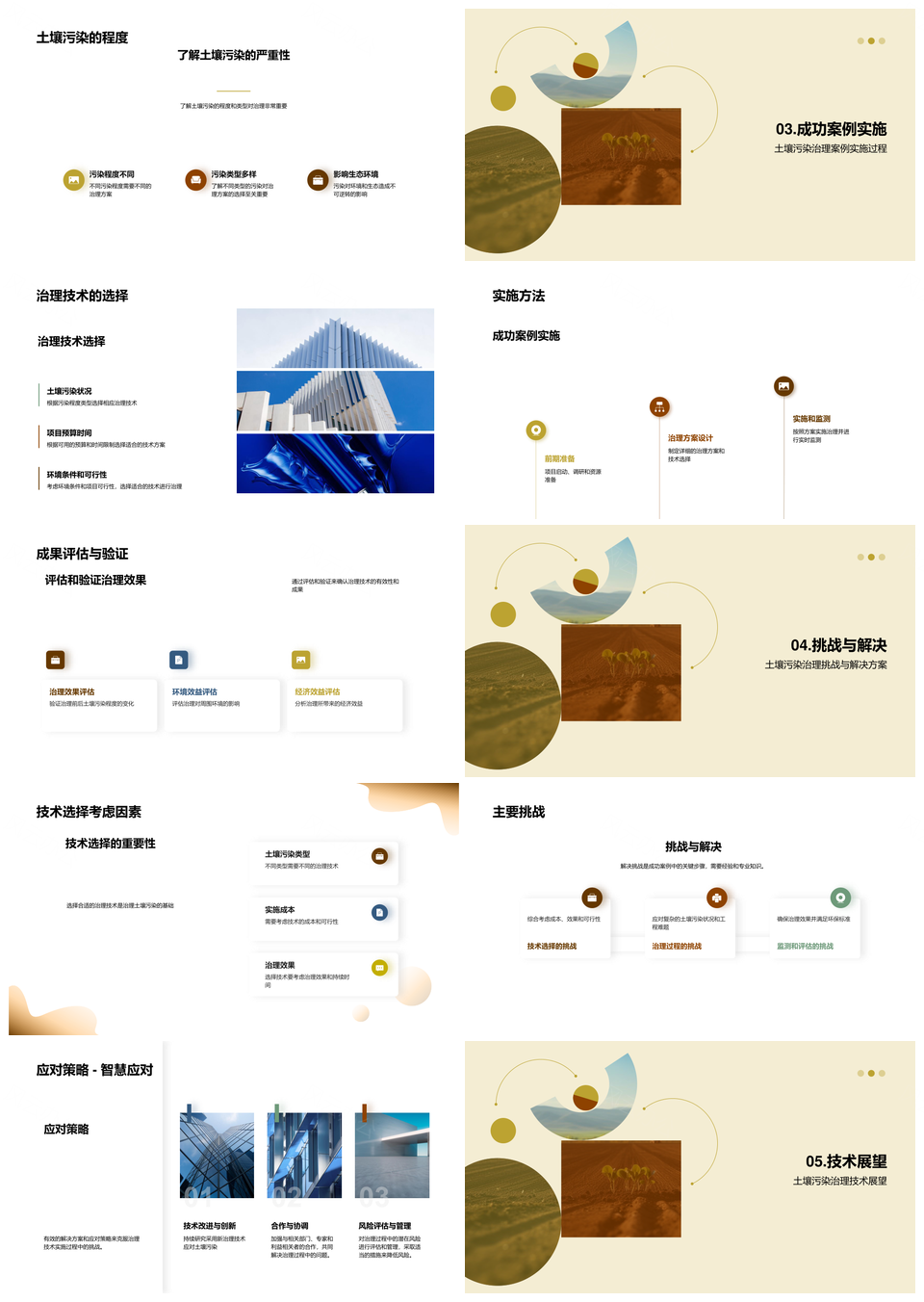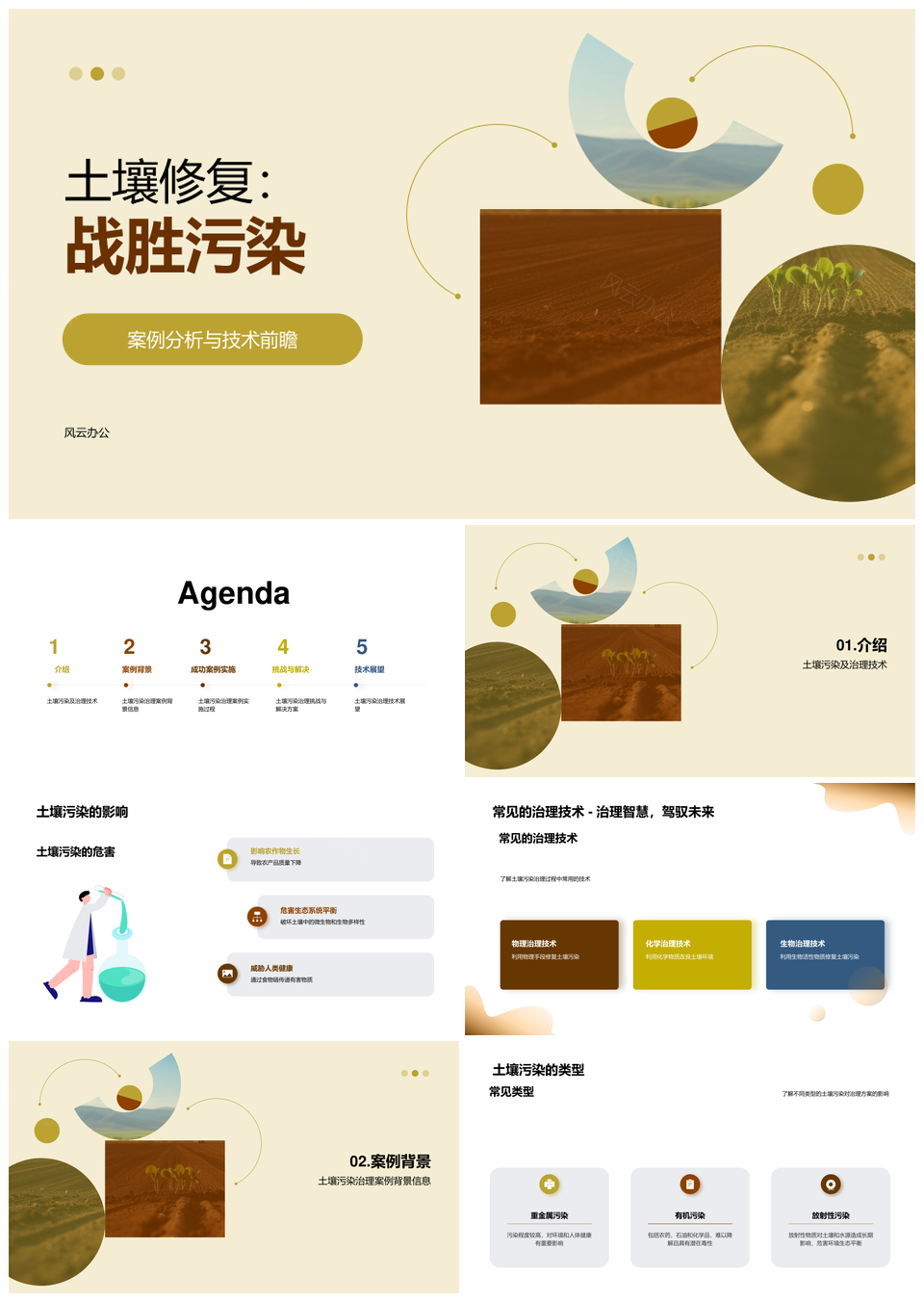 风云办公提供的土壤污染治理修复技术案例有效性展示PPT模板,下载格式为pptx,一共22页,作品中文字及图均可以修改和编辑,图片更改请在作品中右键图片并更换,文字修改请直接点击文字进行修改。