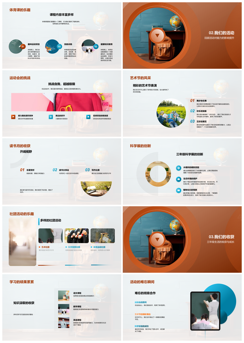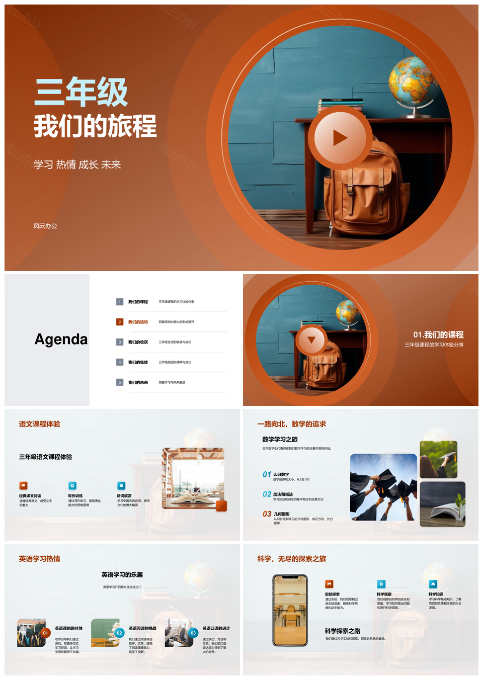 风云办公提供的三年级勤学共进成长向未来PPT模板,下载格式为pptx,一共33页,作品中文字及图均可以修改和编辑,图片更改请在作品中右键图片并更换,文字修改请直接点击文字进行修改。