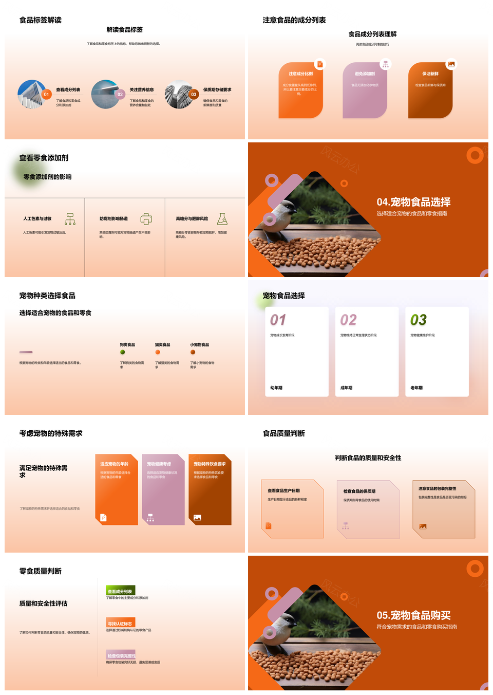 这是一张宠物主人食品零食选择营养指南PPT模板,包含宠物主人、食品、零食、选择、营养、指南等主题内容,也可用作宠物主人食品零食、宠物食品营养指南、宠物主人选择营养、食品零食选择营养、零食选择营养指南、宠物食品选择、宠物营养指南、食品零食选择、零食选择营养、选择营养指南、食品营养指南、营养指南、食品选择、宠物零食、主人选择等PPT场景使用。
