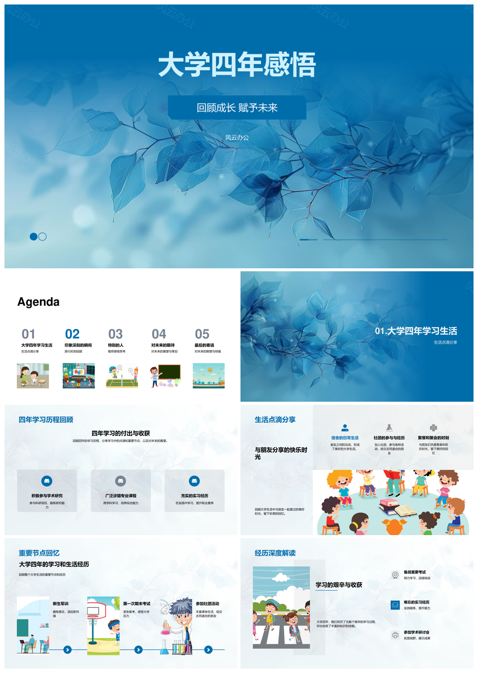 风云办公提供的大学生活学职旅程师生情谊成长回顾PPT模板,下载格式为pptx,一共28页,作品中文字及图均可以修改和编辑,图片更改请在作品中右键图片并更换,文字修改请直接点击文字进行修改。