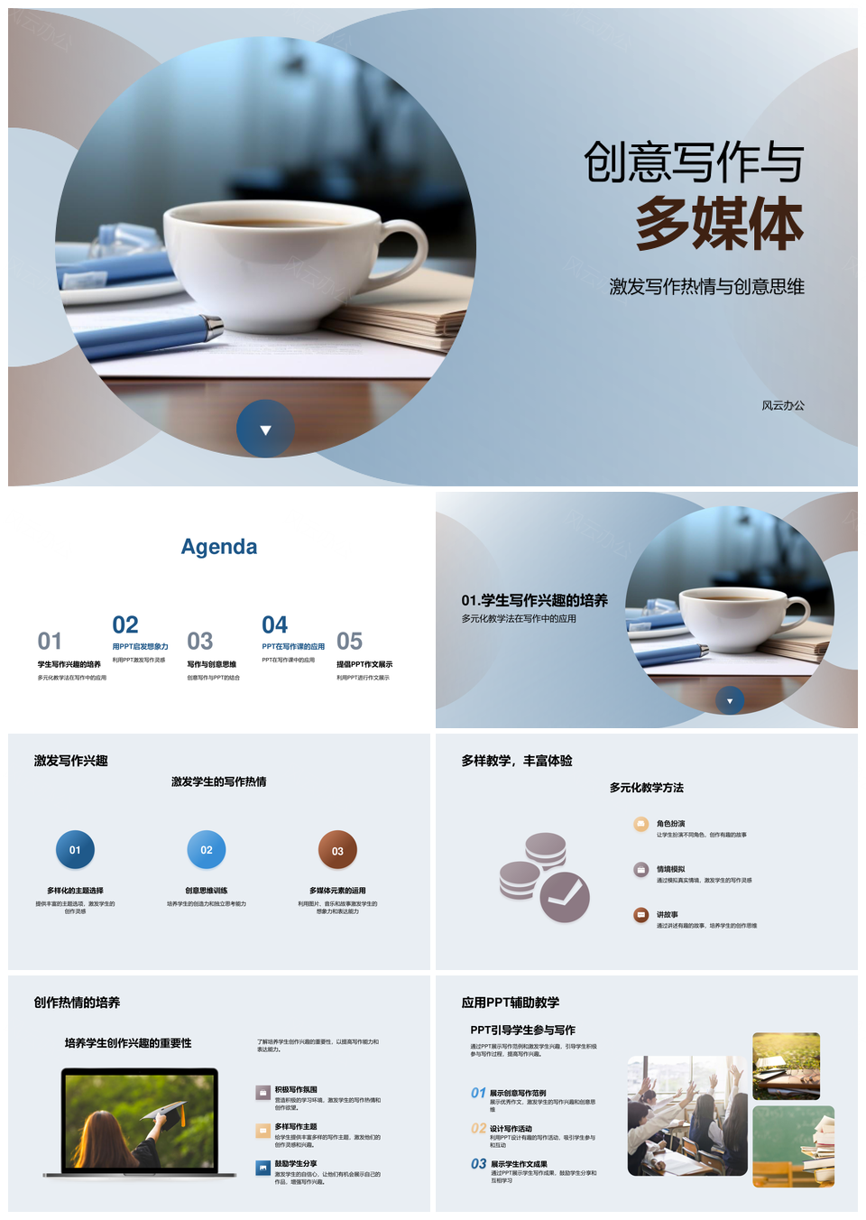 创意写作多媒体教学点燃四年级想象热情PPT模板推荐