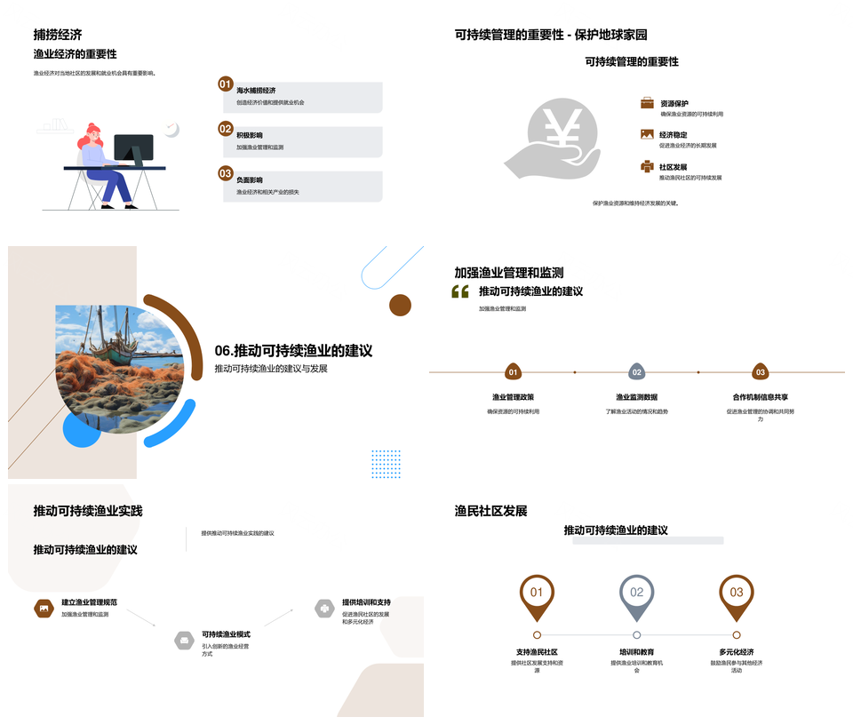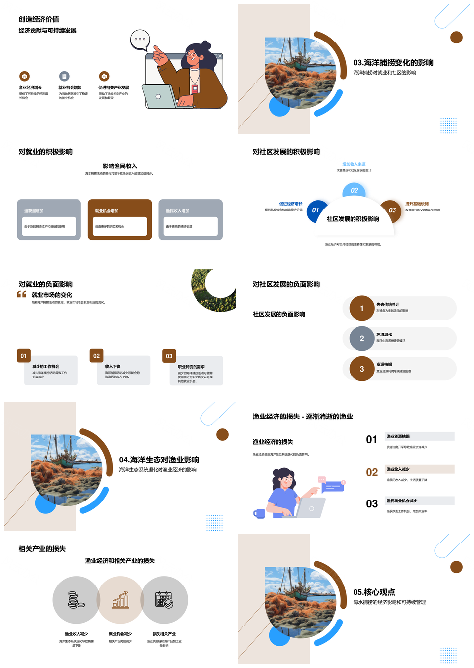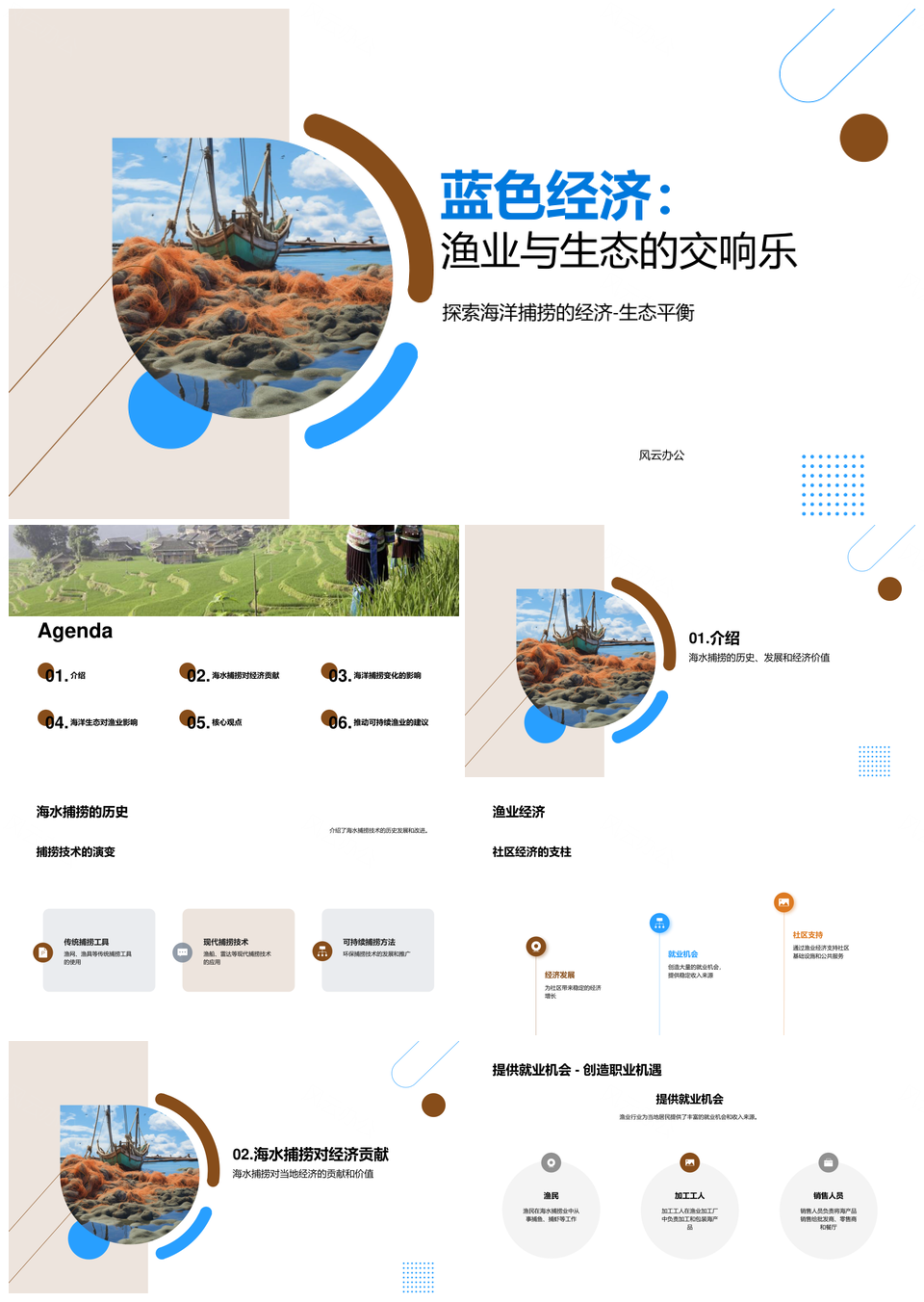 风云办公提供的蓝色经济海水捕捞与社区经济贡献PPT模板,下载格式为pptx,一共24页,作品中文字及图均可以修改和编辑,图片更改请在作品中右键图片并更换,文字修改请直接点击文字进行修改。