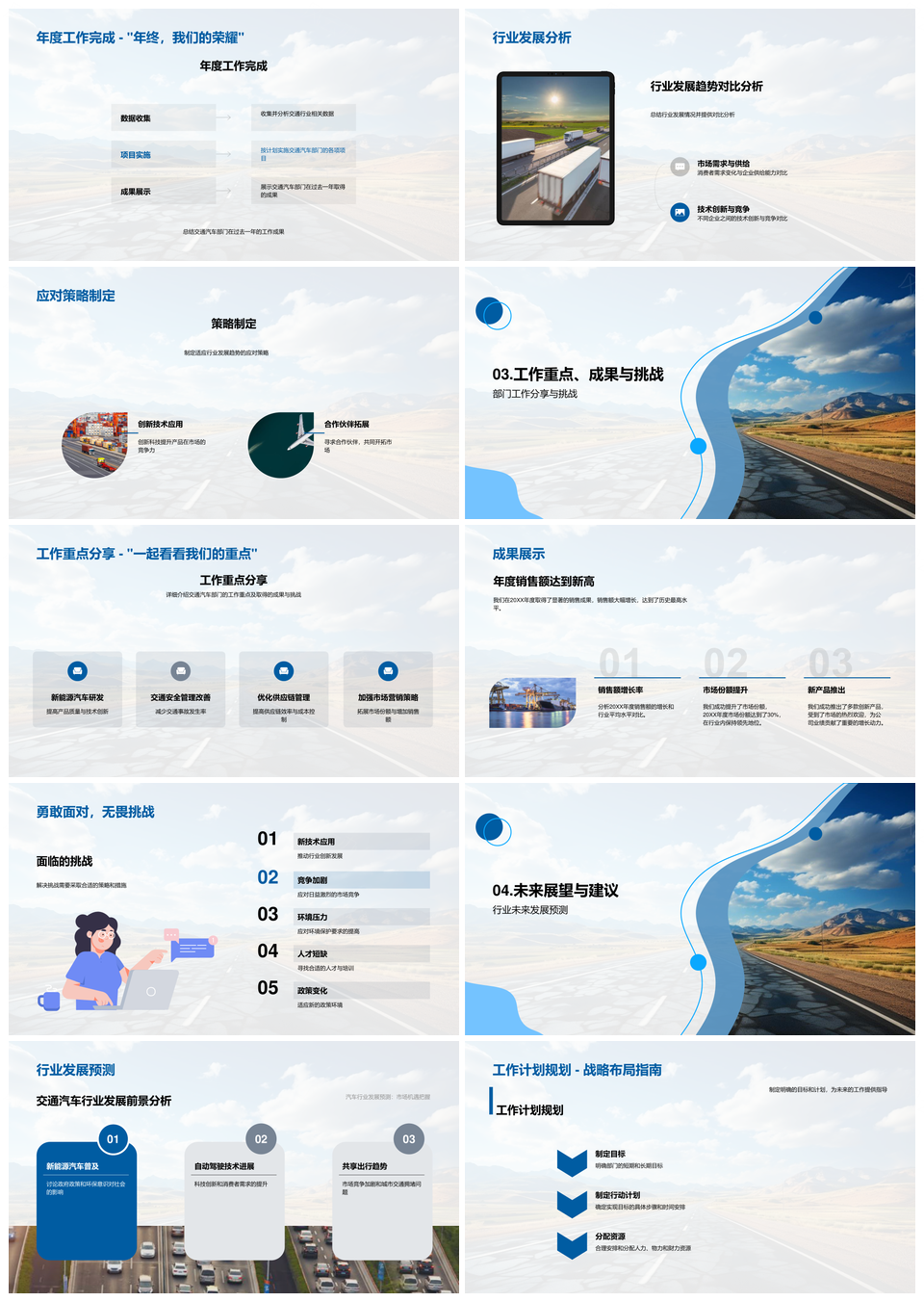 风云办公提供的交通汽车部门年度趋势策略与销售挑战PPT模板,下载格式为pptx,一共23页,作品中文字及图均可以修改和编辑,图片更改请在作品中右键图片并更换,文字修改请直接点击文字进行修改。