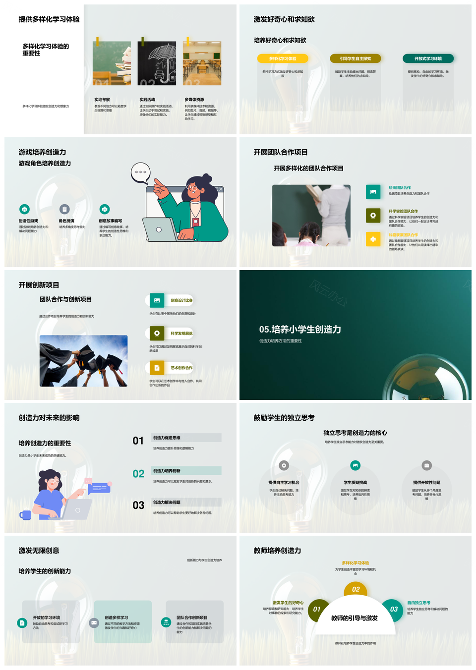 这是一张教育专家教师培养小学生创造力解决问题PPT模板,包含教育专家、教师、培养、小学生、创造力、解决问题等主题内容,也可用作教育专家教师培养小学生、培养小学生创造力解决问题、专家教师培养小学生创造力、教师培养小学生创造力解决问题、教育专家教师培养、专家教师培养解决问题、教师培养小学生解决问题、培养小学生创造力、教育专家解决问题、专家教师创造力、教师培养创造力、培养创造力解决问题、小学生创造力解决问题、教育专家培养、教师培养小学生等PPT场景使用。 风云办公提供的教育专家教师培养小学生创造力解决问题PPT模板,下载格式为pptx,一共28页,作品中文字及图均可以修改和编辑,图片更改请在作品中右键图片并更换,文字修改请直接点击文字进行修改。