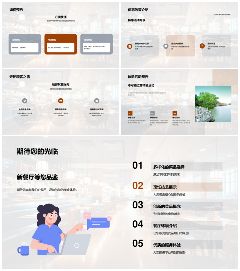 这是一张新潮餐饮之选特色服务邀您品鉴美食顾问体验PPT模板,包含新潮餐饮、之选、特色、服务、品鉴、美食、顾问、体验等主题内容,也可用作新潮餐饮之选特色服务、特色服务邀您品鉴、邀您品鉴美食顾问、品鉴美食顾问体验、顾问体验新潮餐饮、新潮餐饮之选、特色服务邀您、品鉴美食顾问、顾问体验新潮、新潮餐饮特色、服务邀您品鉴、美食顾问体验、新潮餐饮、之选特色、服务邀您等PPT场景使用。 风云办公提供的新潮餐饮之选特色服务邀您品鉴美食顾问体验PPT模板,下载格式为pptx,一共33页,作品中文字及图均可以修改和编辑,图片更改请在作品中右键图片并更换,文字修改请直接点击文字进行修改。