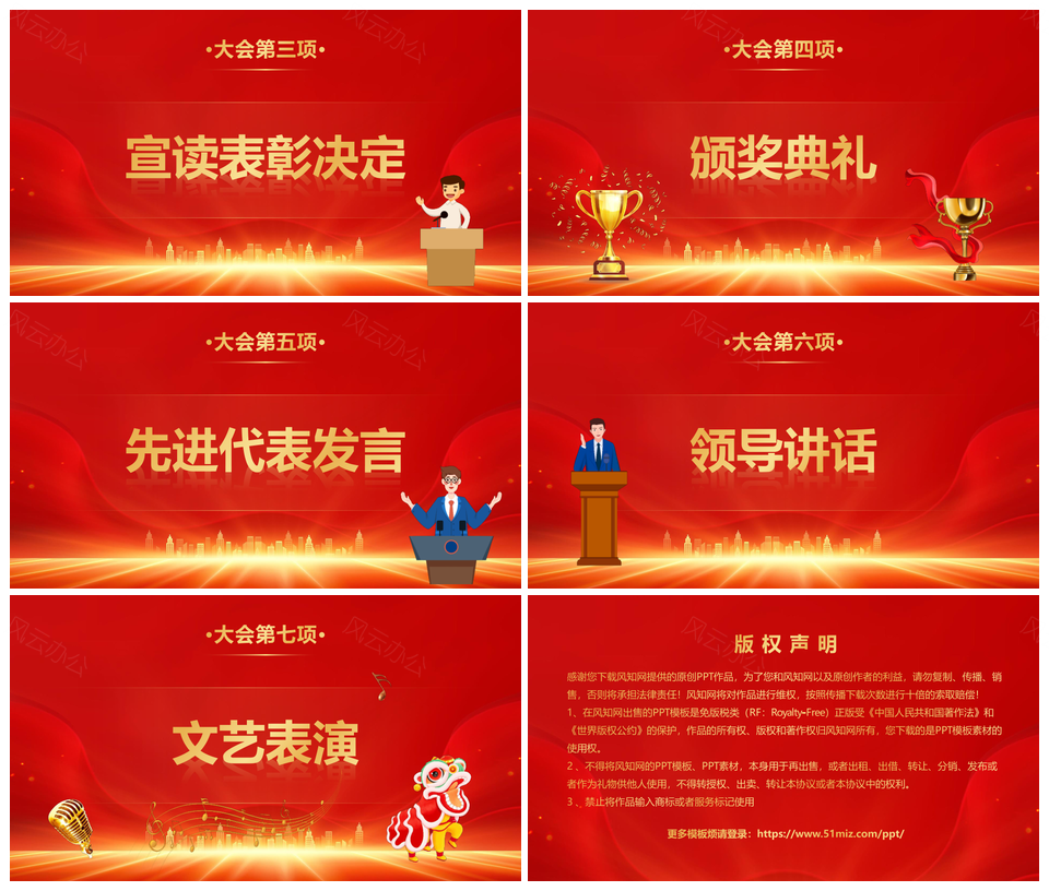 红色公司年会ppt模板答企业谢会庆典颁奖表彰典礼PPT模板
