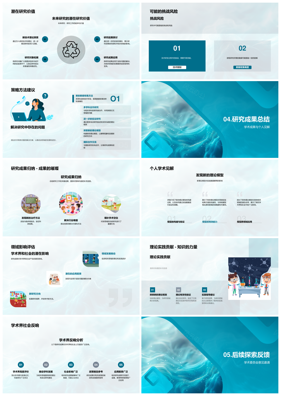 这是一张博士答辩学术贡献学科意义应用前景研究展望PPT模板,包含博士答辩、学术贡献、学科意义、应用前景、研究展望等主题内容,也可用作博士答辩学术贡献、学术贡献学科意义、学科意义应用前景、应用前景研究展望、博士答辩学术贡献学科意义、学术贡献学科意义应用前景、学科意义应用前景研究展望、博士答辩学科意义、学术贡献应用前景、应用前景研究展望、博士答辩、学术贡献、学科意义、应用前景、研究展望等PPT场景使用。 风云办公提供的博士答辩学术贡献学科意义应用前景研究展望PPT模板,下载格式为pptx,一共33页,作品中文字及图均可以修改和编辑,图片更改请在作品中右键图片并更换,文字修改请直接点击文字进行修改。