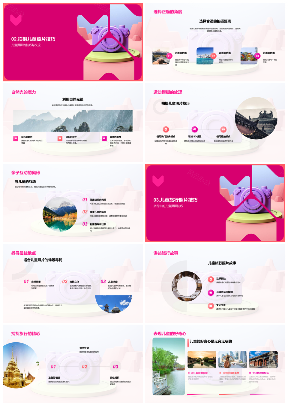 风云办公提供的儿童旅拍光影动感技巧与隐私实践PPT模板,下载格式为pptx,一共28页,作品中文字及图均可以修改和编辑,图片更改请在作品中右键图片并更换,文字修改请直接点击文字进行修改。