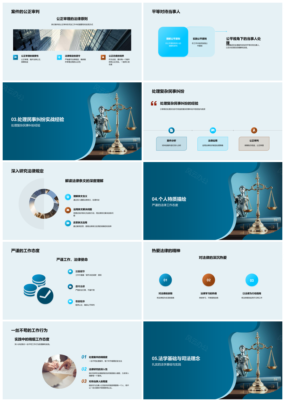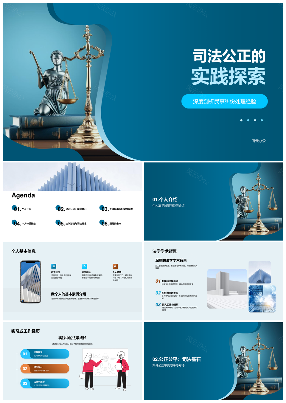 风云办公提供的司法公正民事纠纷审判法学实践研究PPT模板,下载格式为pptx,一共24页,作品中文字及图均可以修改和编辑,图片更改请在作品中右键图片并更换,文字修改请直接点击文字进行修改。