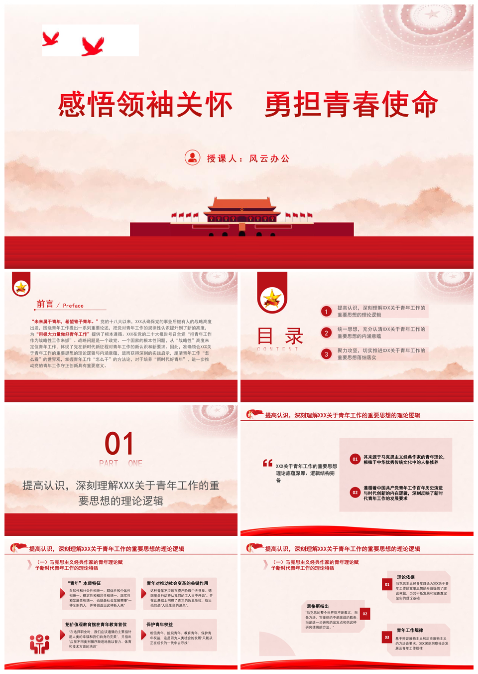 这是一张时代精神青年担当思政课领袖关怀青春使命PPT模板,包含时代精神、青年、担当、思政课、领袖、关怀、青春、使命等主题内容,也可用作时代精神青年担当思政课领袖、青年担当思政课领袖关怀、担当思政课领袖关怀青春、思政课领袖关怀青春使命、时代精神青年担当思政课、青年担当思政课领袖、担当领袖关怀青春使命、思政课领袖关怀青春、领袖关怀青春使命、时代精神青年担当、青年担当思政课、担当思政课领袖、思政课领袖关怀、领袖关怀青春、关怀青春使命等PPT场景使用。 风云办公提供的时代精神青年担当思政课领袖关怀青春使命PPT模板,下载格式为pptx,一共40页,作品中文字及图均可以修改和编辑,图片更改请在作品中右键图片并更换,文字修改请直接点击文字进行修改。