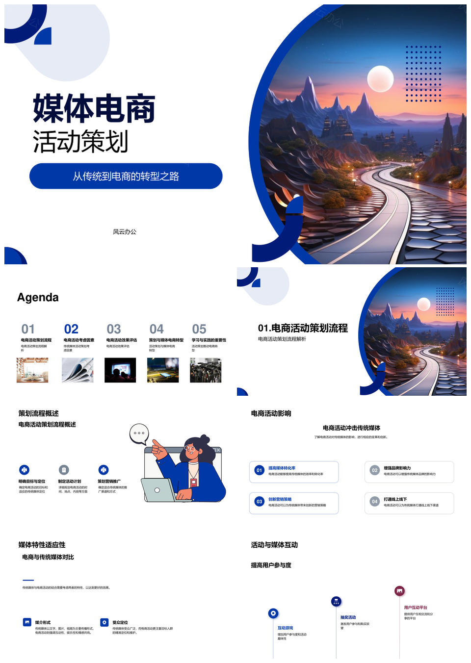风云办公提供的媒体电商转型活动策划流程执行评估PPT模板,下载格式为pptx,一共28页,作品中文字及图均可以修改和编辑,图片更改请在作品中右键图片并更换,文字修改请直接点击文字进行修改。