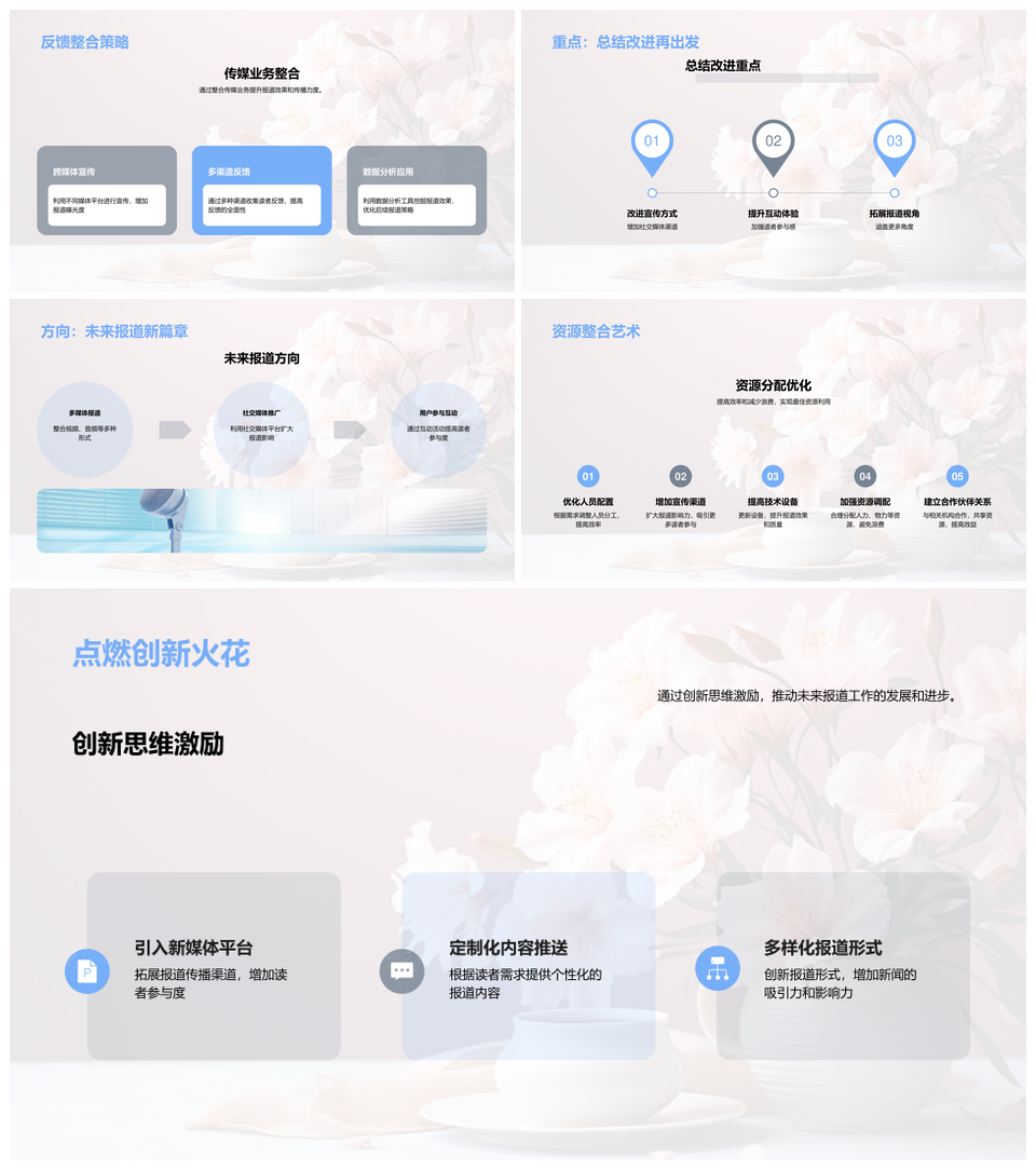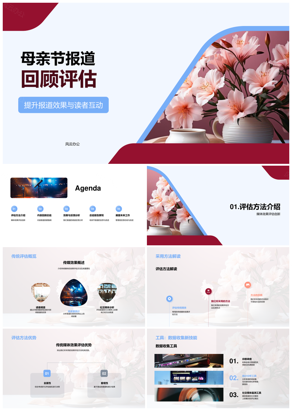 这是一张母亲节报道效果评估与读者互动改进分析PPT模板,包含母亲节、报道、效果、评估、与、读者、互动、改进、分析等主题内容,也可用作母亲节报道效果评估、读者互动改进分析、母亲节报道效果、报道效果评估、读者互动改进、互动改进分析、母亲节报道评估、母亲节读者互动、母亲节报道、报道效果、效果评估、读者互动、互动改进、改进分析、报道互动改进等PPT场景使用。 风云办公提供的母亲节报道效果评估与读者互动改进分析PPT模板,下载格式为pptx,一共33页,作品中文字及图均可以修改和编辑,图片更改请在作品中右键图片并更换,文字修改请直接点击文字进行修改。