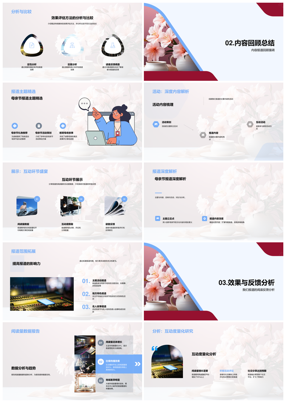 母亲节报道效果评估与读者互动改进分析PPT模板推荐