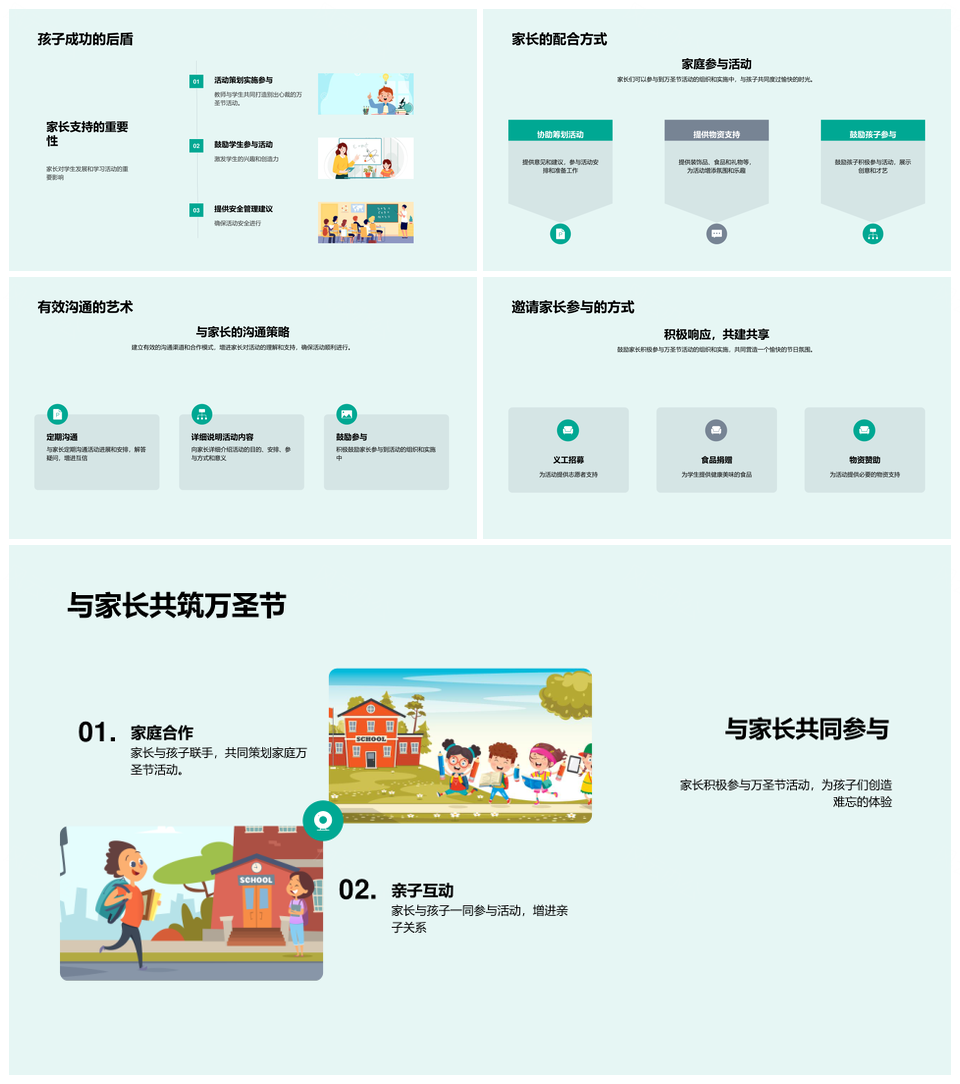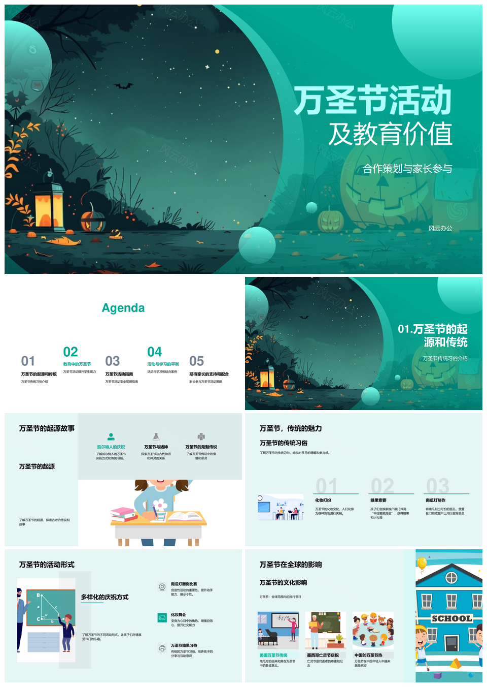 万圣节活动教育价值家长参与起源习俗团队创新能力PPT模板推荐