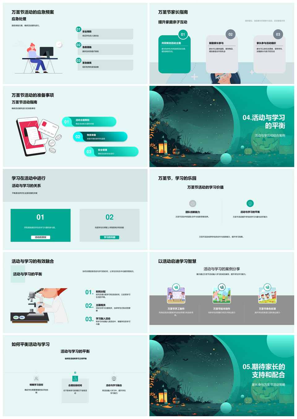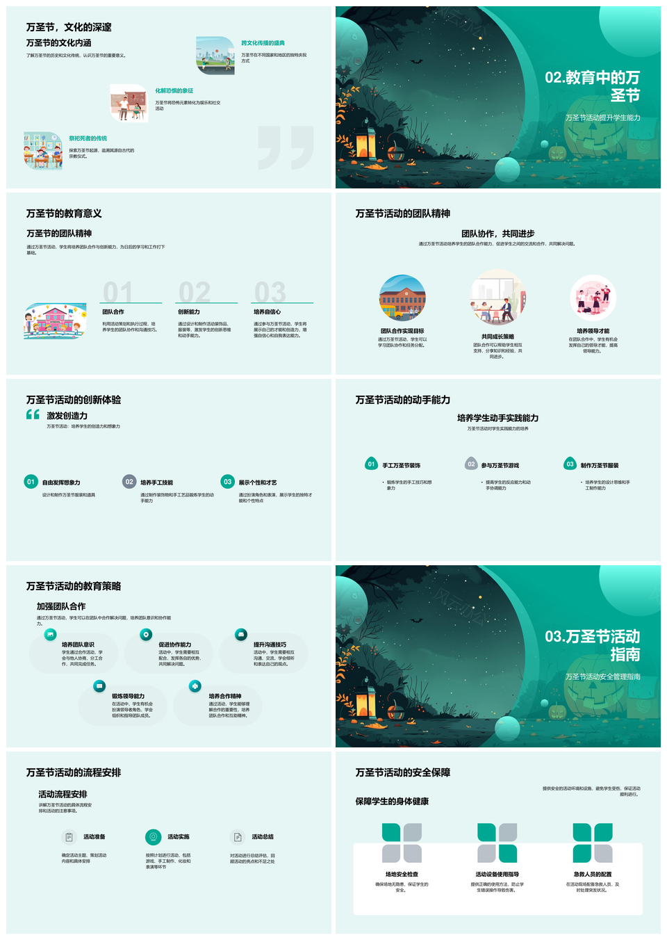 这是一张万圣节活动教育价值家长参与起源习俗团队创新能力PPT模板,包含万圣节、活动、教育、价值、家长、参与、起源、习俗、团队、创新、能力等主题内容,也可用作家长参与万圣节活动、教育价值家长参与、万圣节活动起源习俗、团队创新能力教育、家长参与团队创新、起源习俗团队能力、教育价值起源习俗、家长参与习俗活动、创新能力团队教育、习俗起源家长参与、活动教育家长参与、万圣节活动团队创新、教育价值创新能力、习俗活动团队参与、家长参与教育团队等PPT场景使用。 风云办公提供的万圣节活动教育价值家长参与起源习俗团队创新能力PPT模板,下载格式为pptx,一共33页,作品中文字及图均可以修改和编辑,图片更改请在作品中右键图片并更换,文字修改请直接点击文字进行修改。