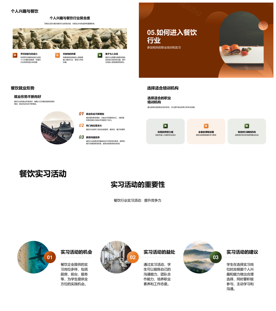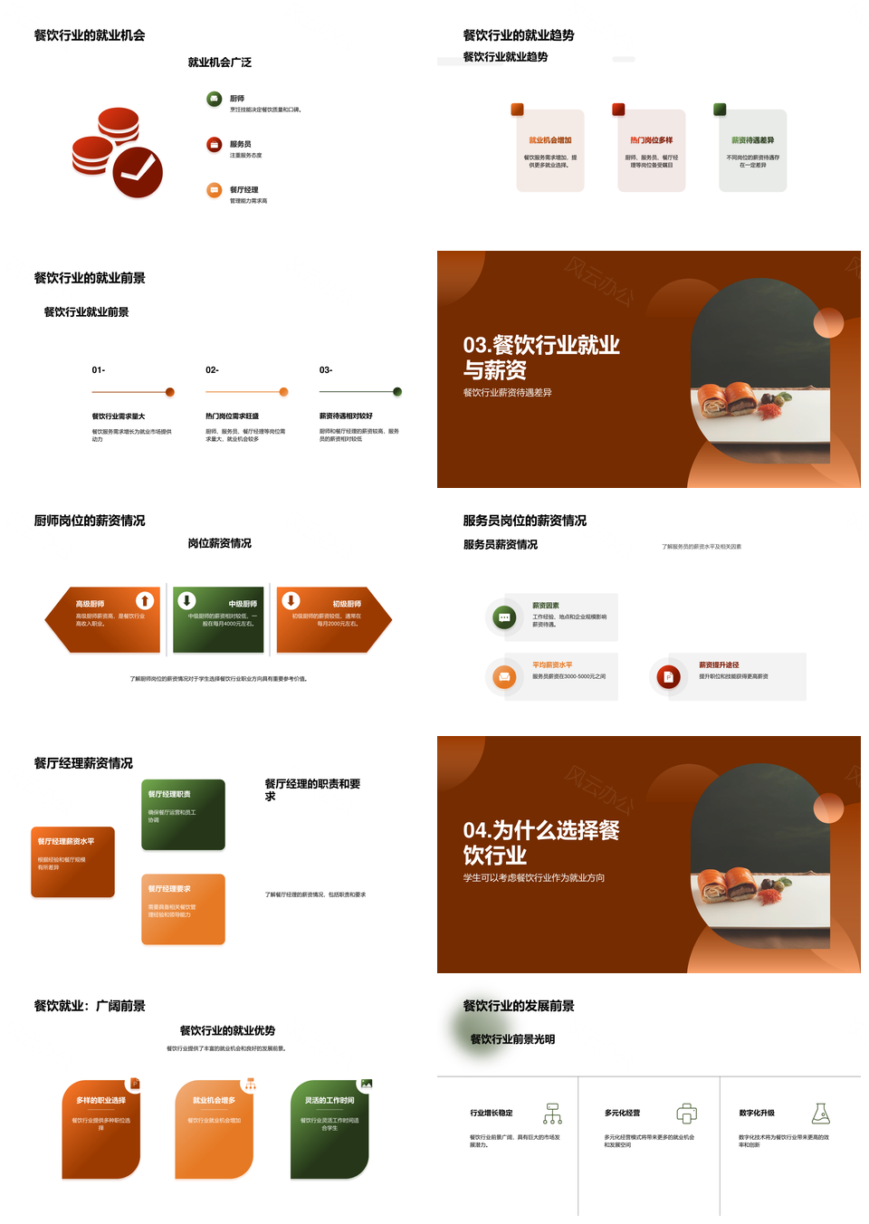这是一张高二学生餐饮就业指导行业趋势市场创新就业形势PPT模板,包含高二学生、餐饮、就业、指导、行业、趋势、市场、创新、就业、形势等主题内容,也可用作高二学生餐饮就业指导行业趋势、高二学生就业指导行业趋势市场创新、高二学生餐饮行业趋势市场创新、餐饮就业指导行业趋势市场创新、就业指导行业趋势市场创新就业形势、高二学生餐饮就业指导、餐饮行业趋势市场创新、高二学生行业趋势市场创新、就业指导行业趋势市场创新、行业趋势市场创新就业形势、高二学生就业指导行业趋势、餐饮就业指导行业趋势、就业指导市场创新就业形势、高二学生就业形势、市场创新就业形势等PPT场景使用。 风云办公提供的高二学生餐饮就业指导行业趋势市场创新就业形势PPT模板,下载格式为pptx,一共23页,作品中文字及图均可以修改和编辑,图片更改请在作品中右键图片并更换,文字修改请直接点击文字进行修改。