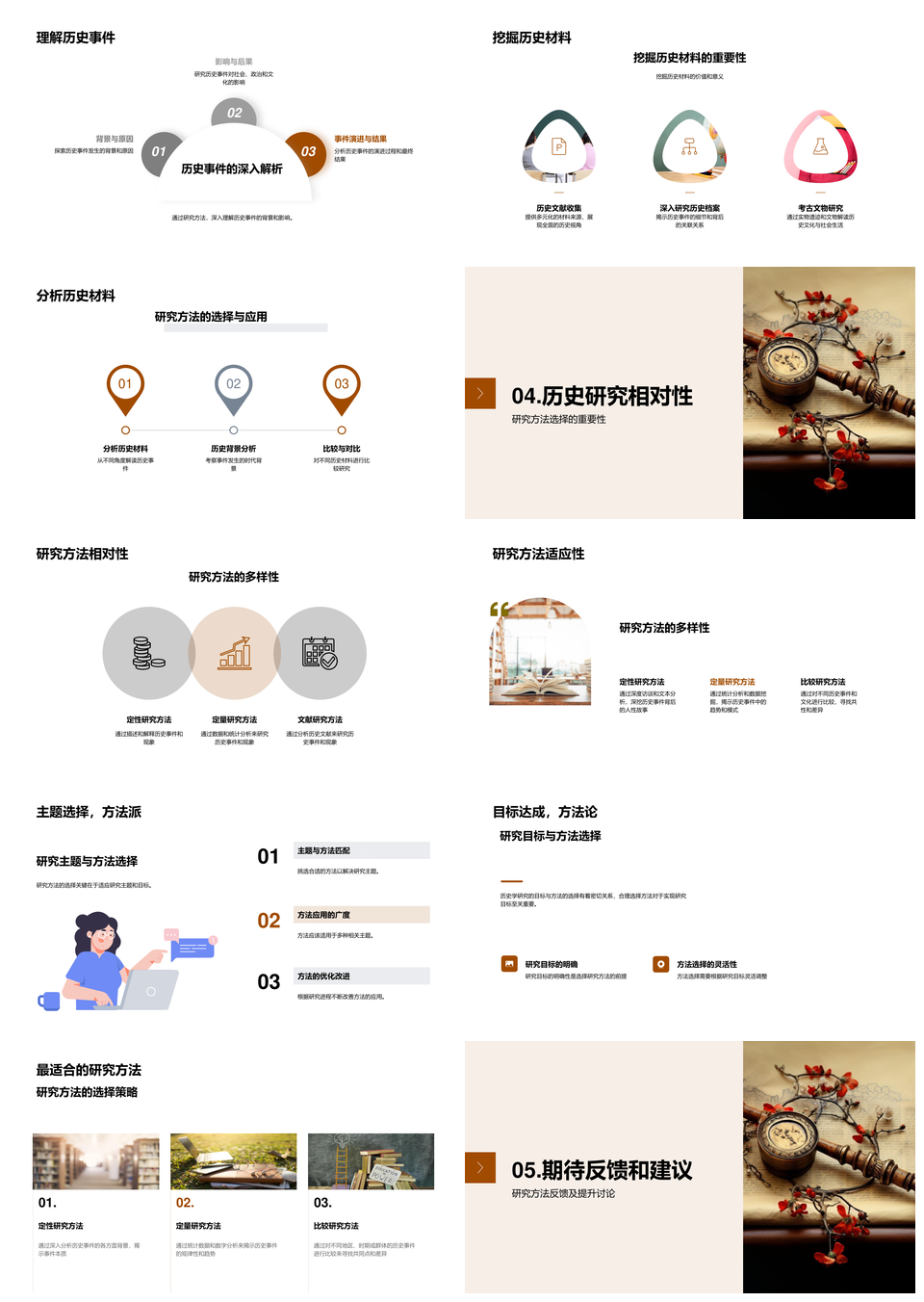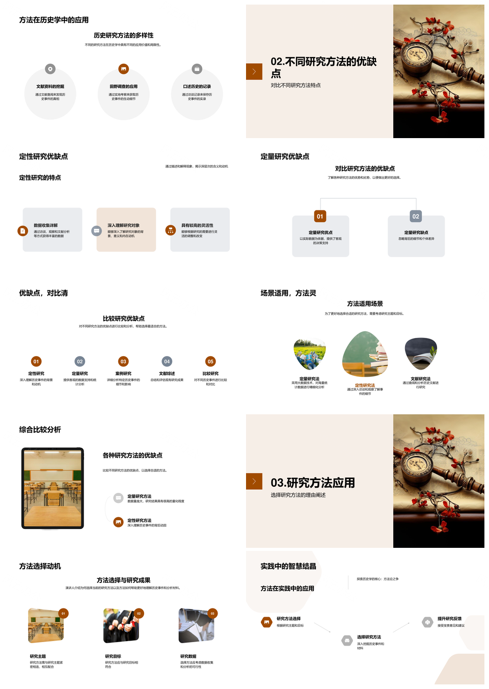历史研究定性定量方法优劣应用古卷轴挖掘PPT模板推荐