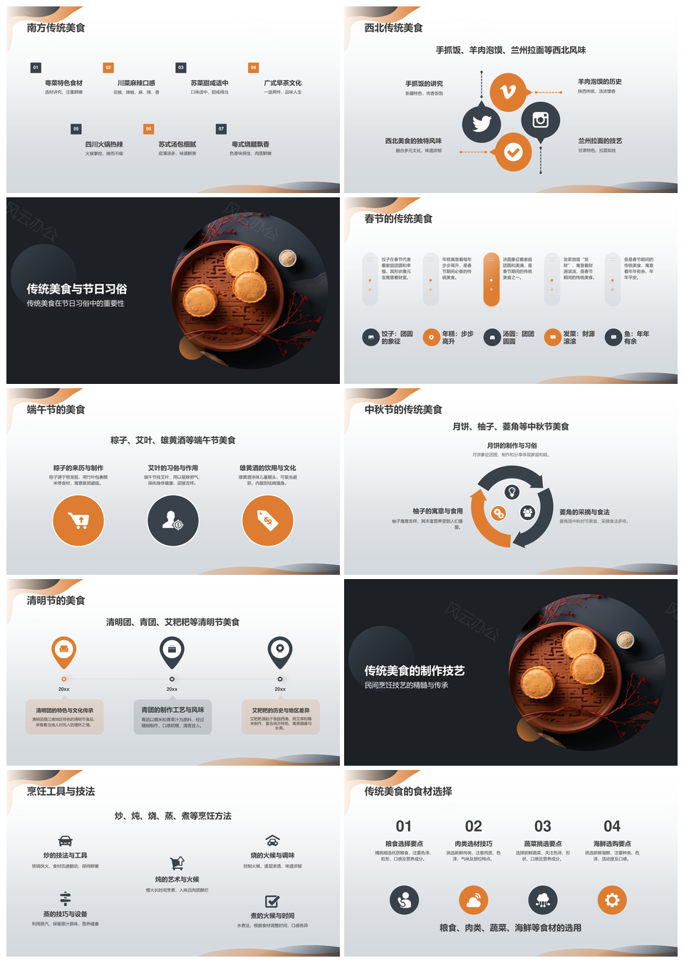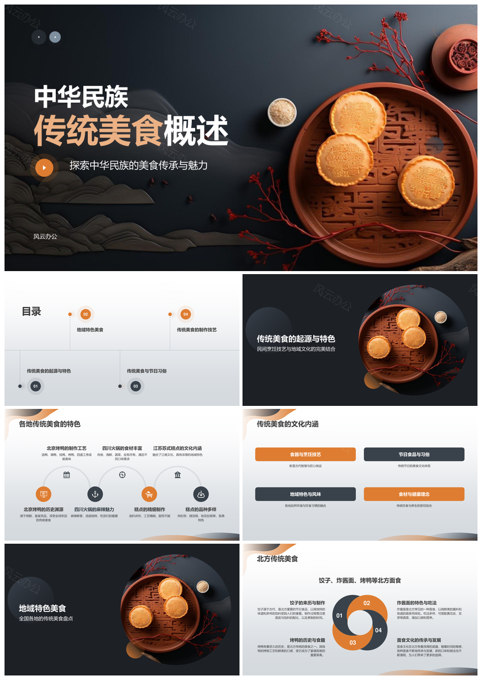 风云办公提供的中秋传统美食月饼制作商务PPT模板,下载格式为pptx,一共20页,作品中文字及图均可以修改和编辑,图片更改请在作品中右键图片并更换,文字修改请直接点击文字进行修改。