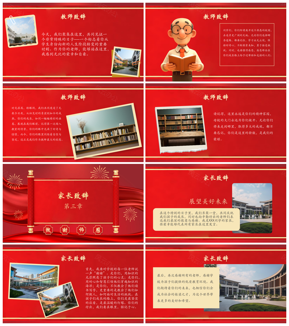 2025红色谢师宴感恩尊师回顾致谢演讲寄语PPT模板