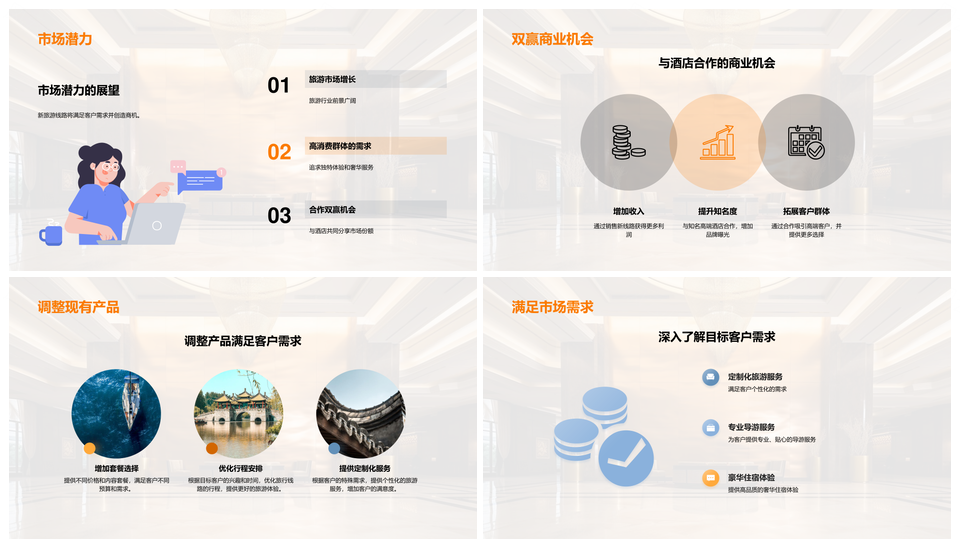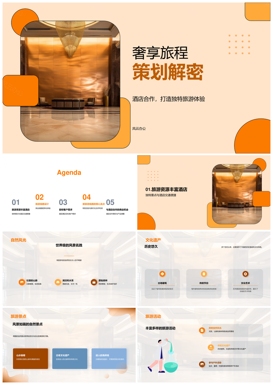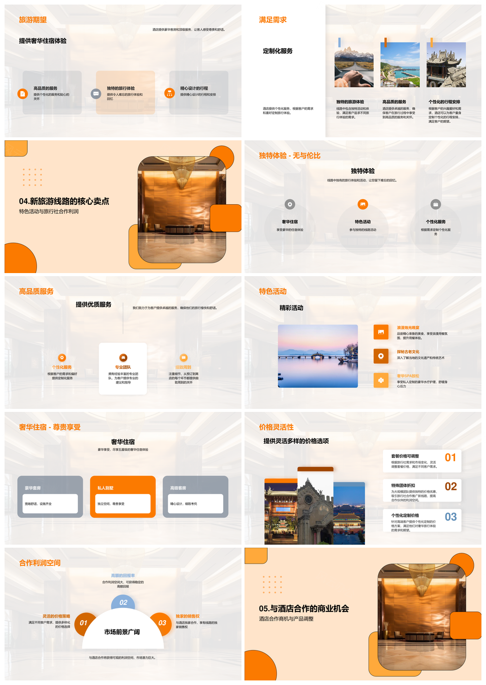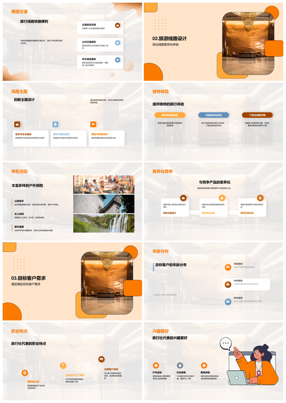 本商务风模板采用经典橘橙双色搭配,兼具沉稳质感与视觉活力,适用于提案报告、品牌战略等专业场景。极简设计聚焦内容核心,无冗余装饰,版面以几何线条与留白构建清晰逻辑框架。所有元素均支持一键替换,内置矢量图标库、可编辑数据图表,满足高效定制需求。排版结构经过轻量化处理,文字层级分明,素材可无损缩放,适配不同比例屏幕。原创版式融入低饱和度渐变,平衡商务严谨与设计美感,助力用户从容传递专业价值。