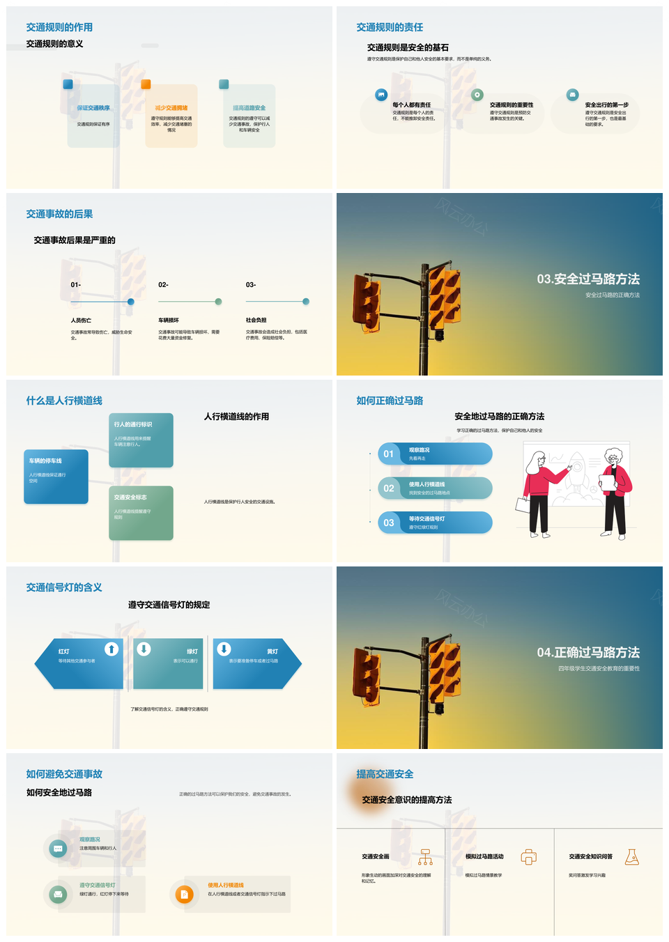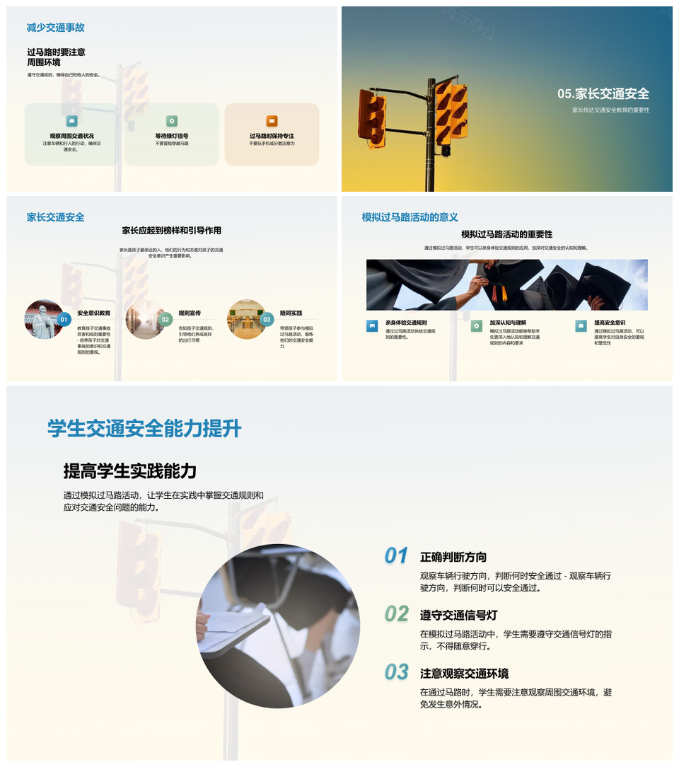 这是一张四年级交通安全家长引导信号灯模拟过马路PPT模板,包含四年级、交通安全、家长、引导、信号灯、模拟、过马路等主题内容,也可用作四年级交通安全家长引导、交通安全家长引导信号灯、家长引导信号灯模拟、引导信号灯模拟过马路、四年级交通安全家长、家长引导信号灯、信号灯模拟过马路、交通安全家长引导、四年级家长引导、四年级交通安全、家长引导、信号灯模拟、模拟过马路、四年级家长、引导信号灯模拟等PPT场景使用。 风云办公提供的四年级交通安全家长引导信号灯模拟过马路PPT模板,下载格式为pptx,一共23页,作品中文字及图均可以修改和编辑,图片更改请在作品中右键图片并更换,文字修改请直接点击文字进行修改。