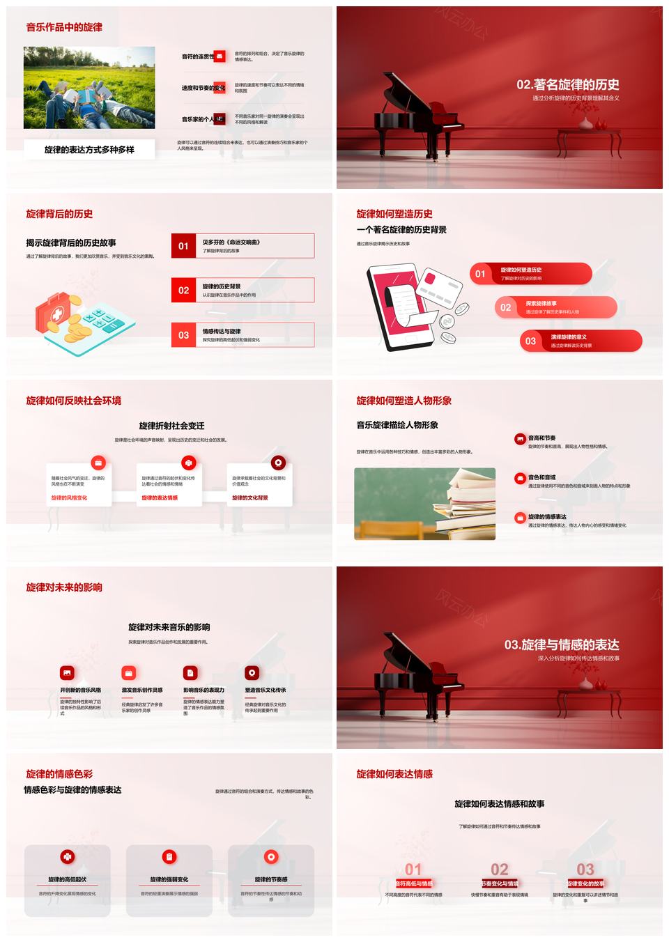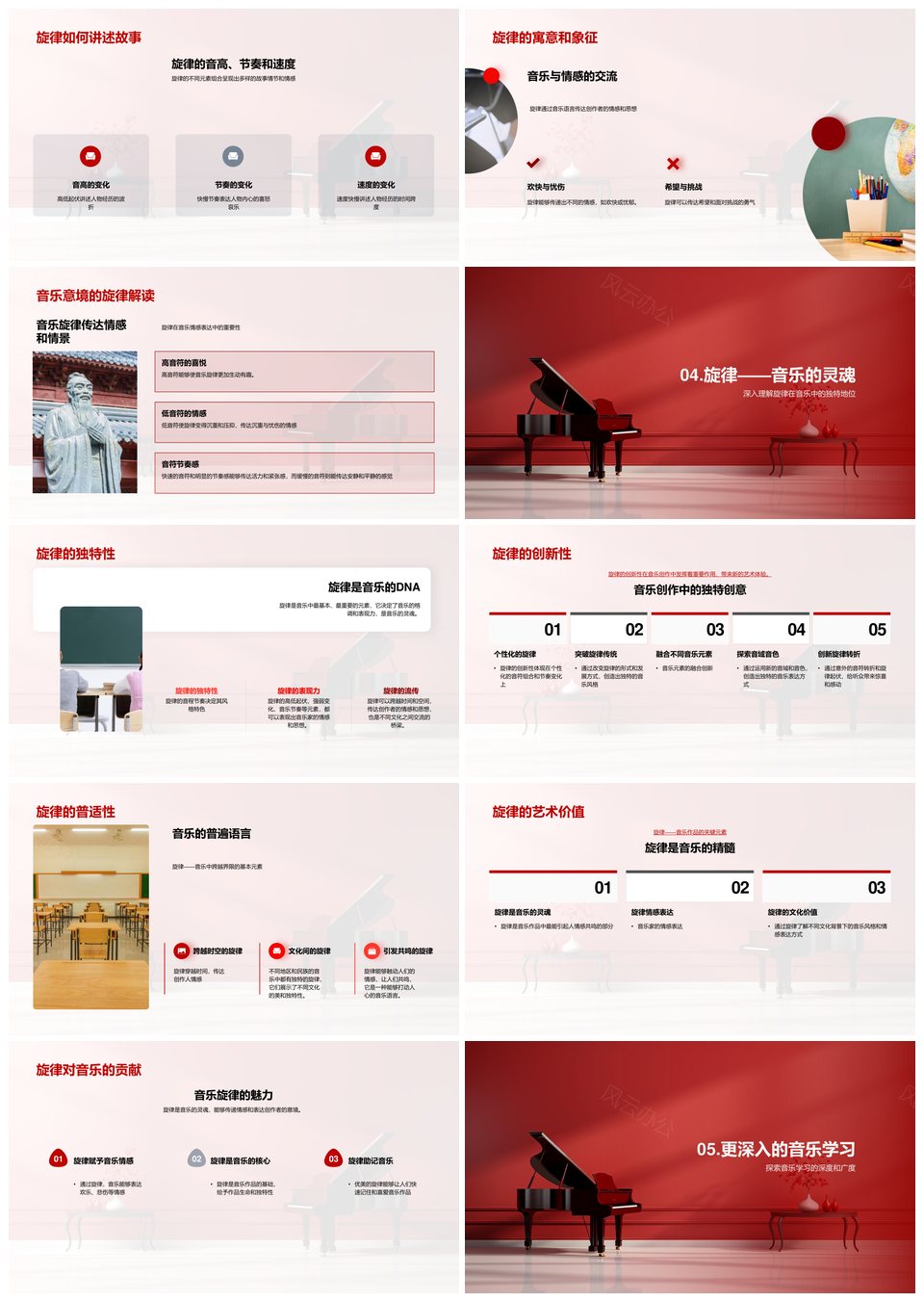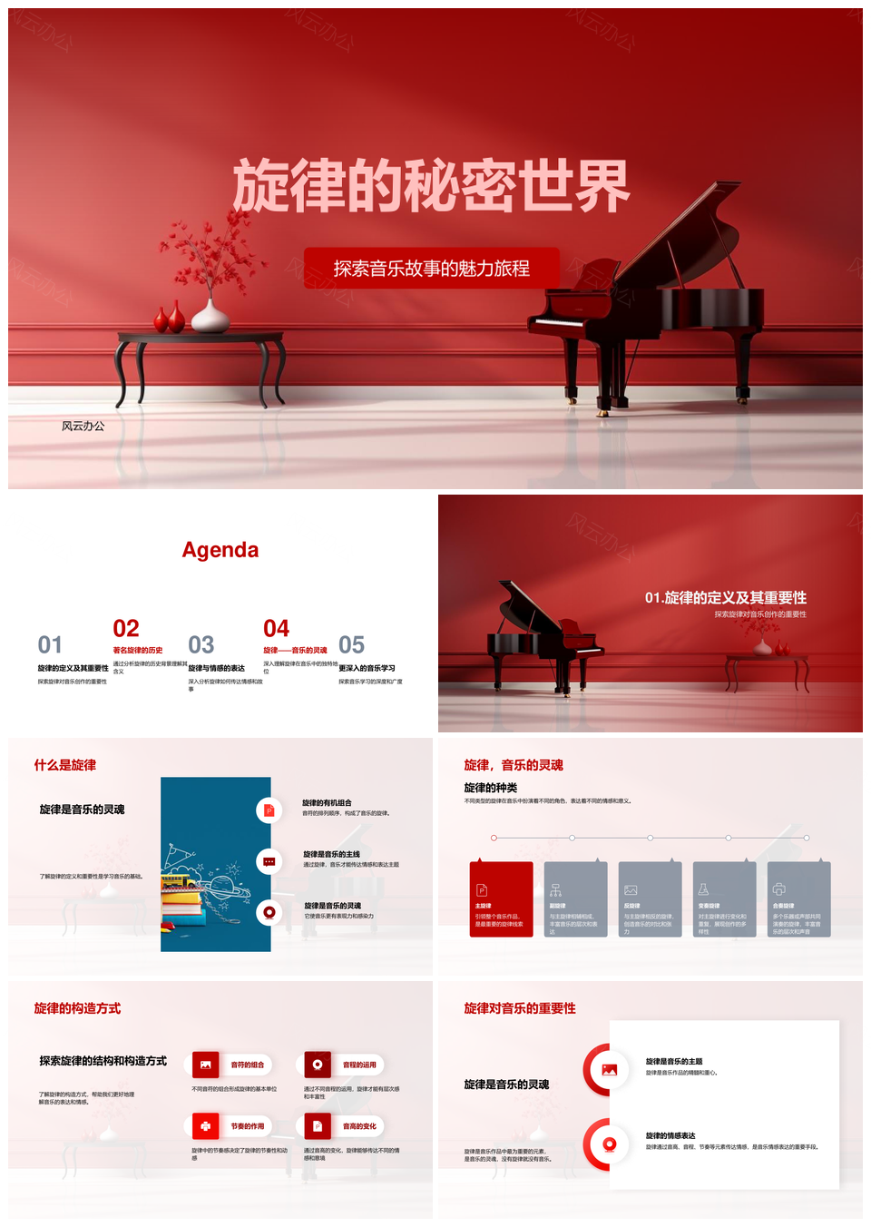 风云办公提供的旋律魂音乐故事创作情感文化PPT模板,下载格式为pptx,一共33页,作品中文字及图均可以修改和编辑,图片更改请在作品中右键图片并更换,文字修改请直接点击文字进行修改。