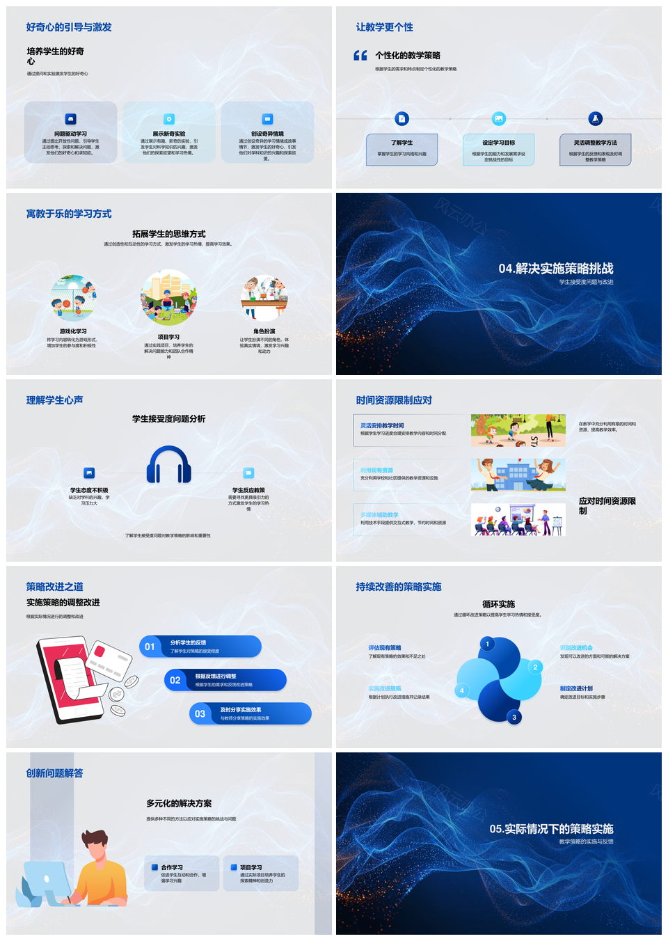 这是一张教师策略激发学生学科兴趣应对压力挑战实践PPT模板,包含教师、策略、激发、学生、学科、兴趣、应对、压力、挑战、实践等主题内容,也可用作教师策略激发学生、策略激发学生学科、激发学生学科兴趣、应对压力挑战实践、学生学科兴趣应对、学科兴趣应对压力、兴趣应对压力挑战、教师策略应对压力、策略应对压力挑战、应对挑战实践、教师策略激发、策略激发学生、学生学科兴趣、应对压力挑战、压力挑战实践等PPT场景使用。 风云办公提供的教师策略激发学生学科兴趣应对压力挑战实践PPT模板,下载格式为pptx,一共33页,作品中文字及图均可以修改和编辑,图片更改请在作品中右键图片并更换,文字修改请直接点击文字进行修改。