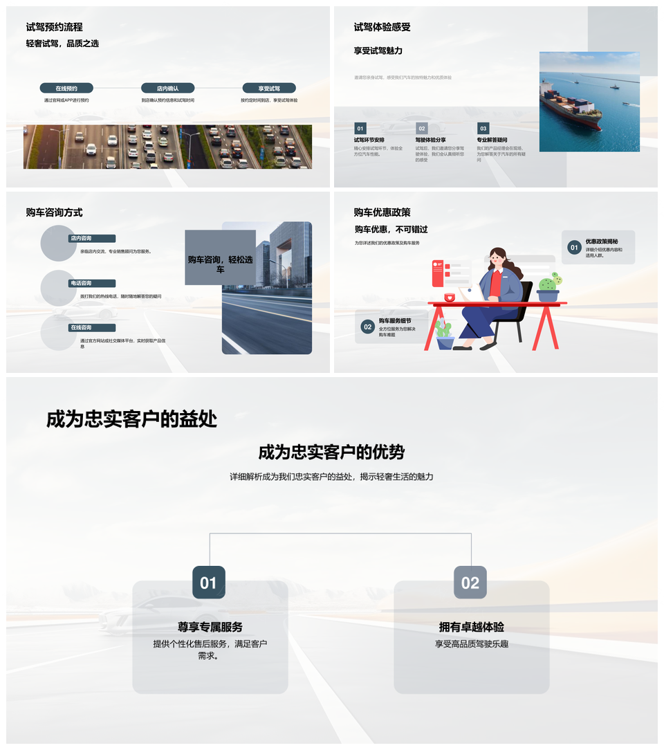 这是一张2025轻奢品质高端汽车设计性能豪华驾乘体验PPT模板,包含2025、轻奢、品质、高端、汽车、设计、性能、豪华、驾乘、体验等主题内容,也可用作2025轻奢品质高端汽车、轻奢品质高端汽车设计、品质高端汽车设计性能、高端汽车设计性能豪华、汽车设计性能豪华驾乘、设计性能豪华驾乘体验、性能豪华驾乘体验、高端汽车设计性能、汽车设计性能豪华、设计性能豪华驾乘、豪华驾乘体验、高端汽车、汽车设计、设计性能、性能豪华、豪华驾乘、驾乘体验、2025轻奢、轻奢品质、品质高端等PPT场景使用。 风云办公提供的2025轻奢品质高端汽车设计性能豪华驾乘体验PPT模板,下载格式为pptx,一共33页,作品中文字及图均可以修改和编辑,图片更改请在作品中右键图片并更换,文字修改请直接点击文字进行修改。