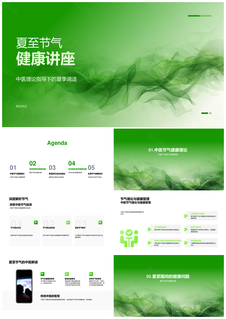 风云办公提供的夏至中医健康调适运动管理讲座PPT模板,下载格式为pptx,一共24页,作品中文字及图均可以修改和编辑,图片更改请在作品中右键图片并更换,文字修改请直接点击文字进行修改。