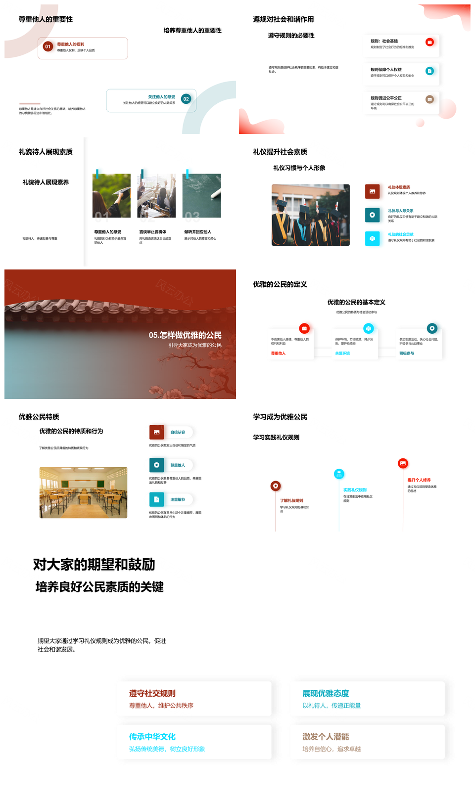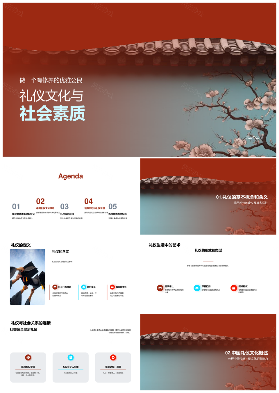 这是一张中国传统礼仪文化与优雅公民社会素质社交规则PPT模板,包含中国传统礼仪文化、优雅、公民社会、素质、社交规则等主题内容,也可用作中国传统礼仪文化、礼仪文化与优雅公民、优雅公民社会素质、公民社会素质社交、社会素质社交规则、传统礼仪文化优雅、礼仪文化优雅公民、文化优雅公民社会、优雅公民社会素质、公民社会素质规则、传统礼仪优雅公民、礼仪优雅公民社会、优雅公民社交规则、公民社会社交规则、礼仪文化社会素质等PPT场景使用。 风云办公提供的中国传统礼仪文化与优雅公民社会素质社交规则PPT模板,下载格式为pptx,一共27页,作品中文字及图均可以修改和编辑,图片更改请在作品中右键图片并更换,文字修改请直接点击文字进行修改。
