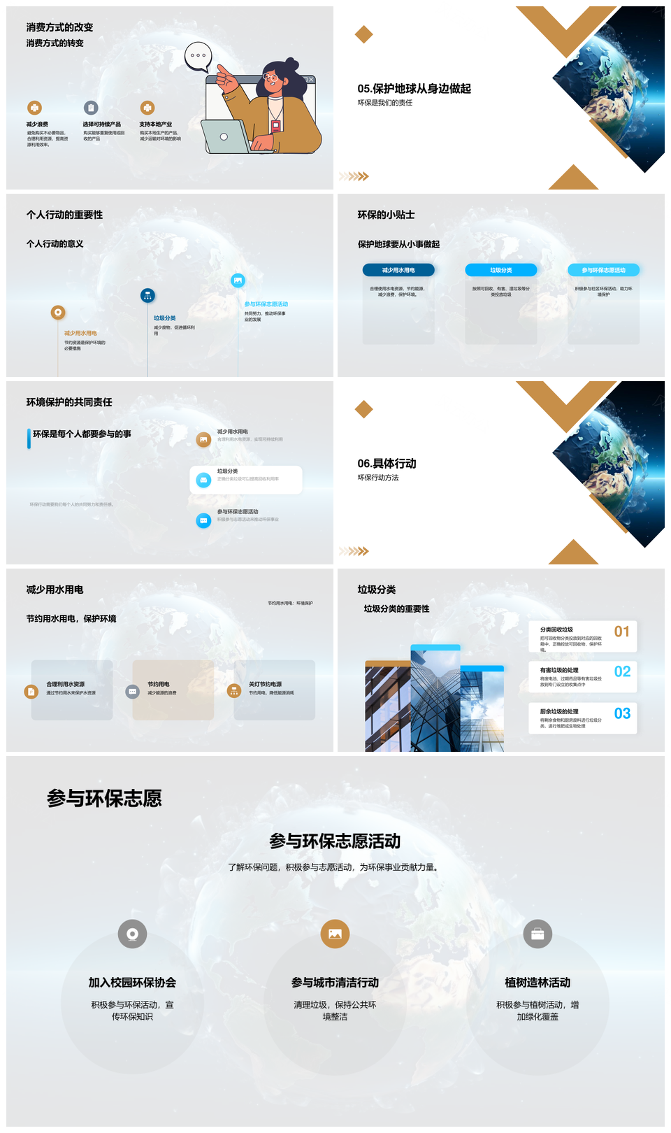 这是一张环保志愿教育减碳净化守护地球可持续发展PPT模板,包含环保、志愿、教育、减碳、净化、守护、地球、可持续、发展等主题内容,也可用作环保志愿教育减碳净化守护地球、减碳净化守护地球可持续发展、环保志愿教育减碳净化、志愿教育减碳净化守护、教育减碳净化守护地球、守护地球可持续发展减碳、环保减碳净化守护地球、志愿教育减碳守护地球、教育净化守护地球可持续、减碳净化守护地球环保、环保教育减碳净化地球、志愿减碳守护地球发展、环保志愿减碳净化教育、守护地球净化可持续发展、环保减碳守护地球教育等PPT场景使用。 风云办公提供的环保志愿教育减碳净化守护地球可持续发展PPT模板,下载格式为pptx,一共27页,作品中文字及图均可以修改和编辑,图片更改请在作品中右键图片并更换,文字修改请直接点击文字进行修改。