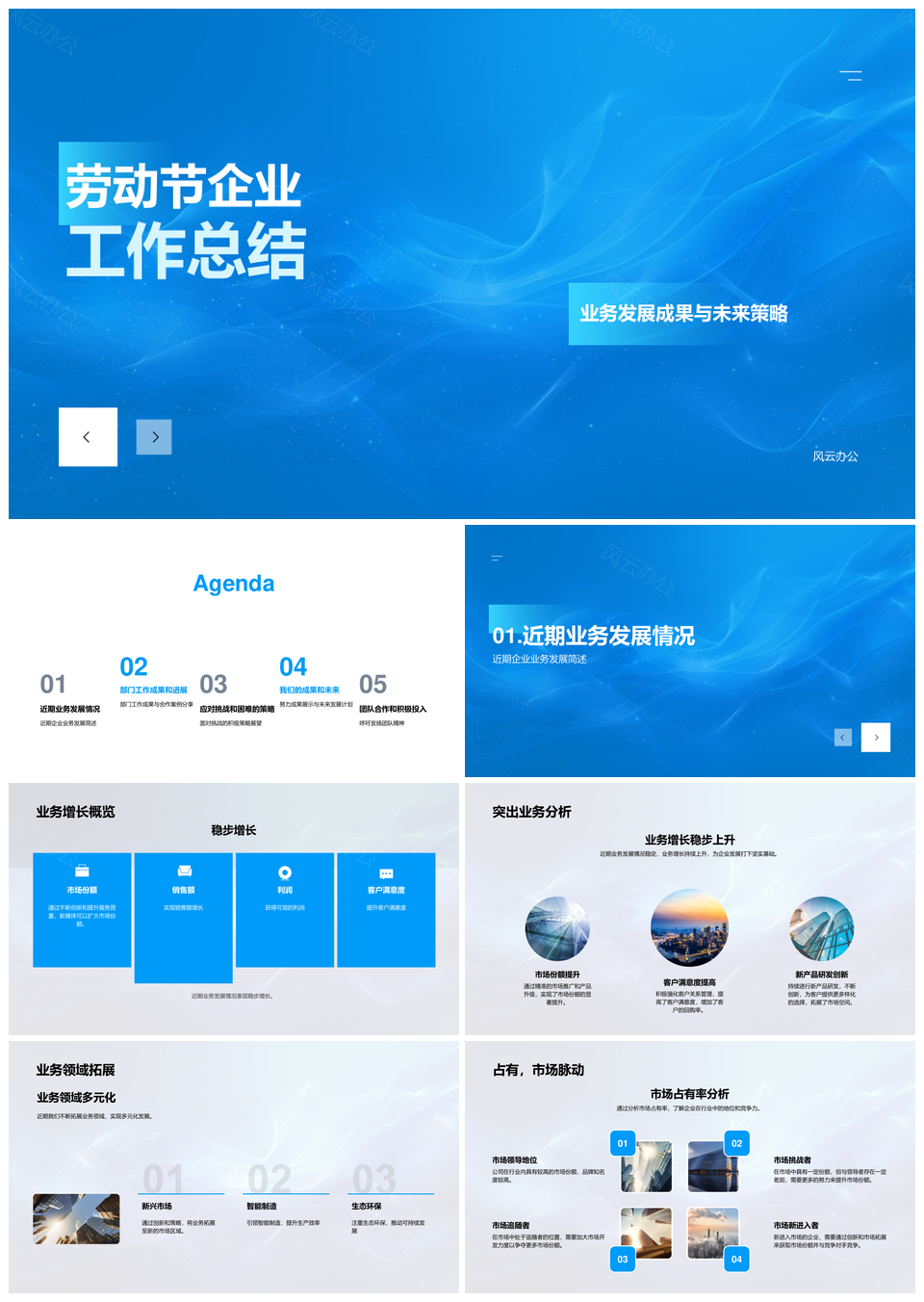 劳动节企业工作总结业务发展未来策略部门成果表彰合作案例应对挑战优化PPT模板推荐