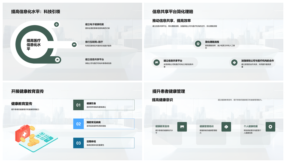 这是一张基本医疗保险创新模式实践险企医疗机构效率管理培训会PPT模板,包含基本医疗保险、创新模式、实践、险企、医疗机构、效率管理、培训会等主题内容,也可用作基本医疗保险创新模式实践险企、创新模式实践险企医疗机构、实践险企医疗机构效率管理、险企医疗机构效率管理培训会、基本医疗保险创新模式实践、创新模式实践险企、实践险企医疗机构、险企医疗机构效率管理、医疗机构效率管理培训会、基本医疗保险创新模式、创新模式实践、实践险企、险企医疗机构、医疗机构效率管理、效率管理培训会等PPT场景使用。 风云办公提供的基本医疗保险创新模式实践险企医疗机构效率管理培训会PPT模板,下载格式为pptx,一共32页,作品中文字及图均可以修改和编辑,图片更改请在作品中右键图片并更换,文字修改请直接点击文字进行修改。