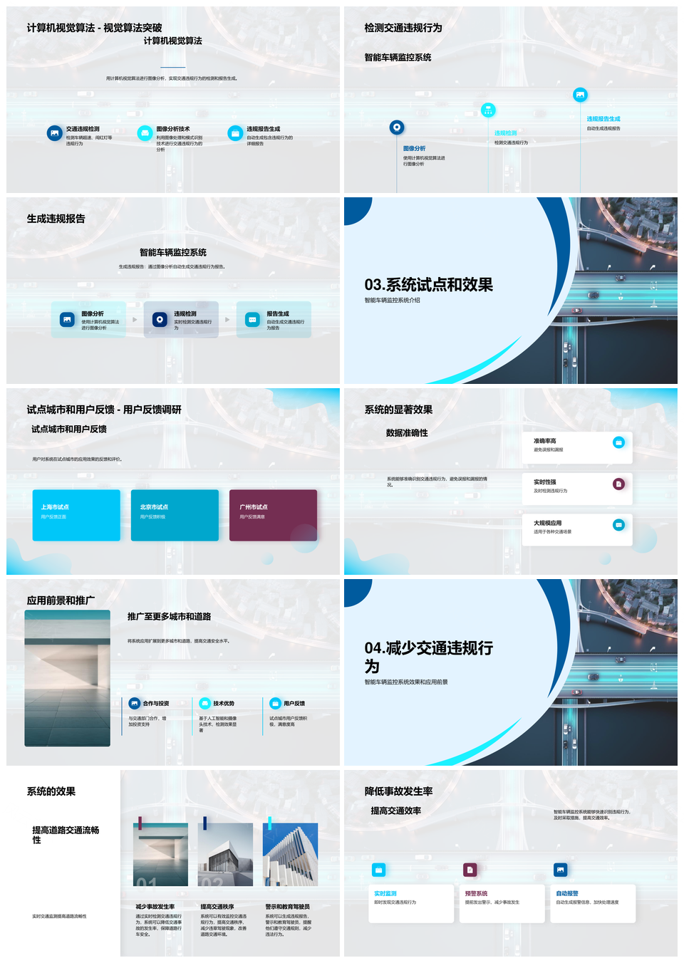 风云办公提供的AI交通监控系统智能守护交通安全PPT模板,下载格式为pptx,一共23页,作品中文字及图均可以修改和编辑,图片更改请在作品中右键图片并更换,文字修改请直接点击文字进行修改。