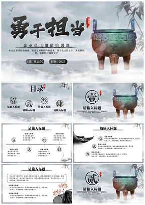 2025青铜鼎中国风员工激励培训实景水墨峰PPT模板