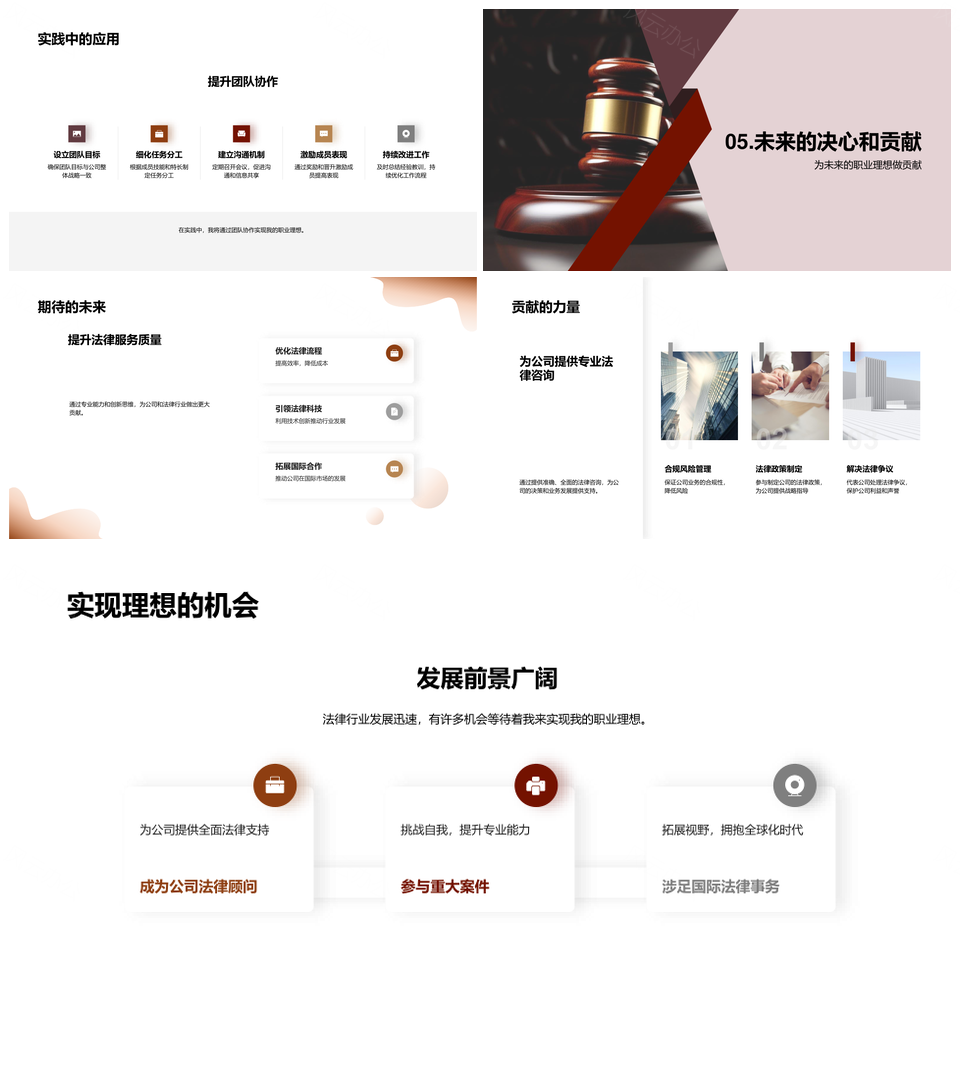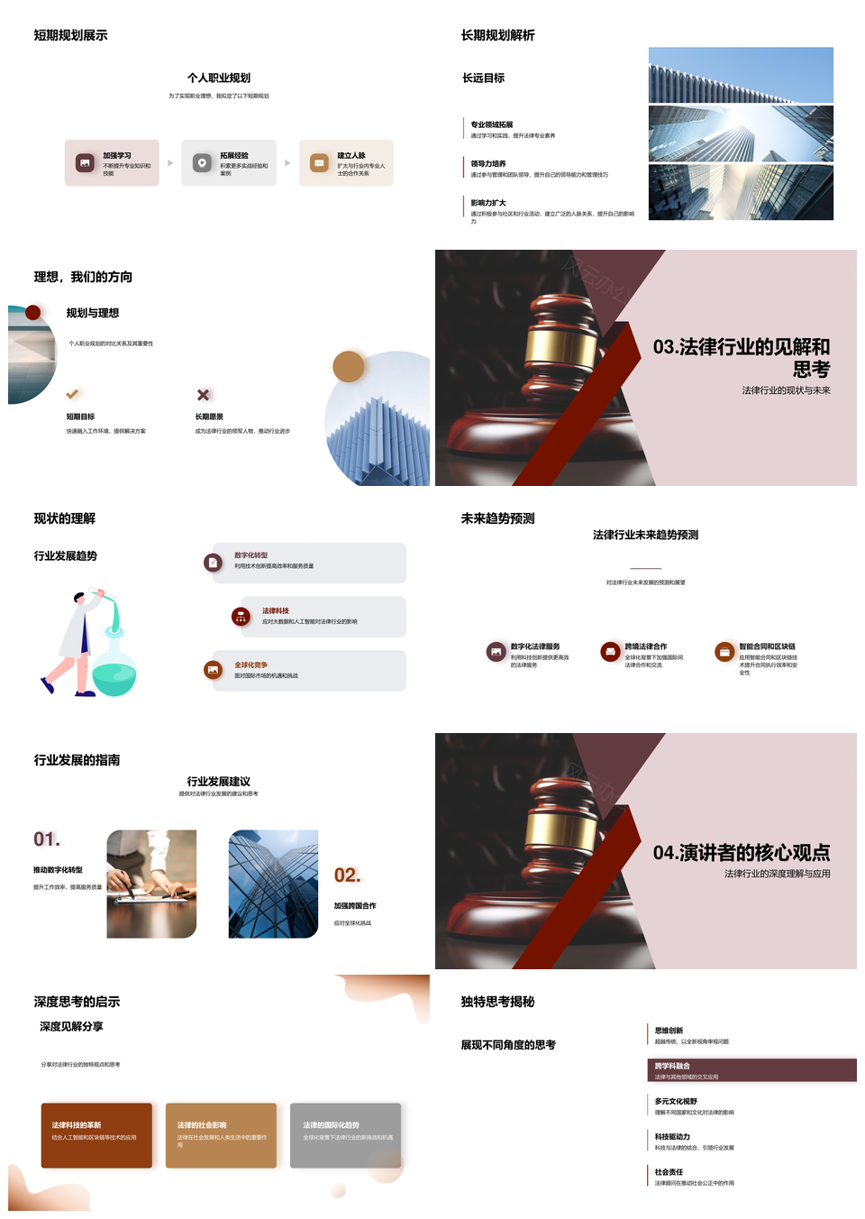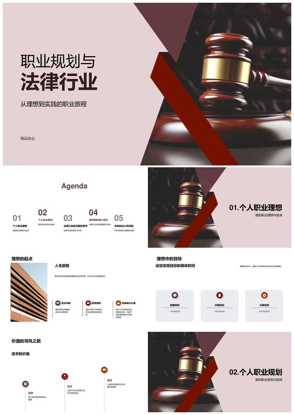 风云办公提供的法律职业规划理想与行业趋势法槌指引PPT模板,下载格式为pptx,一共23页,作品中文字及图均可以修改和编辑,图片更改请在作品中右键图片并更换,文字修改请直接点击文字进行修改。