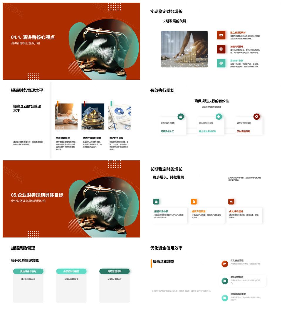这是一张财务总监规划企业风险管理优化资金效益PPT模板,包含财务总监、规划、企业、风险管理、优化、资金、效益等主题内容,也可用作财务总监规划企业风险管理、规划企业风险管理优化、企业风险管理优化资金效益、财务总监规划风险管理优化、风险管理优化资金效益、财务总监优化资金效益、规划优化资金效益、企业风险管理优化、财务总监规划企业、规划企业风险优化、财务总监规划风险管理、风险管理资金效益、优化资金效益、财务总监风险管理、企业资金效益等PPT场景使用。 风云办公提供的财务总监规划企业风险管理优化资金效益PPT模板,下载格式为pptx,一共26页,作品中文字及图均可以修改和编辑,图片更改请在作品中右键图片并更换,文字修改请直接点击文字进行修改。