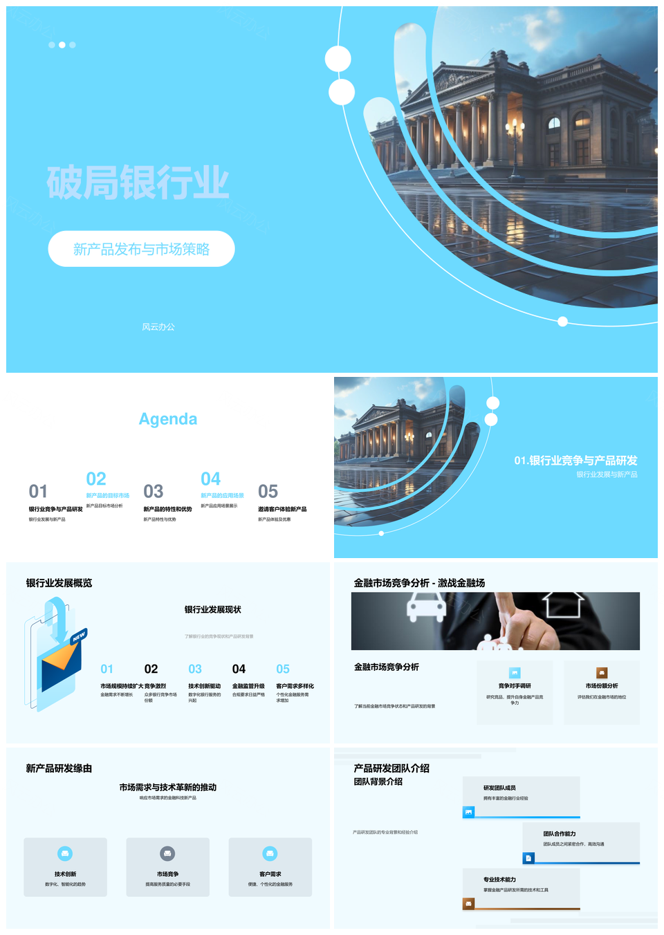 风云办公提供的银行业破局新品发布营销策略活动PPT模板,下载格式为pptx,一共33页,作品中文字及图均可以修改和编辑,图片更改请在作品中右键图片并更换,文字修改请直接点击文字进行修改。