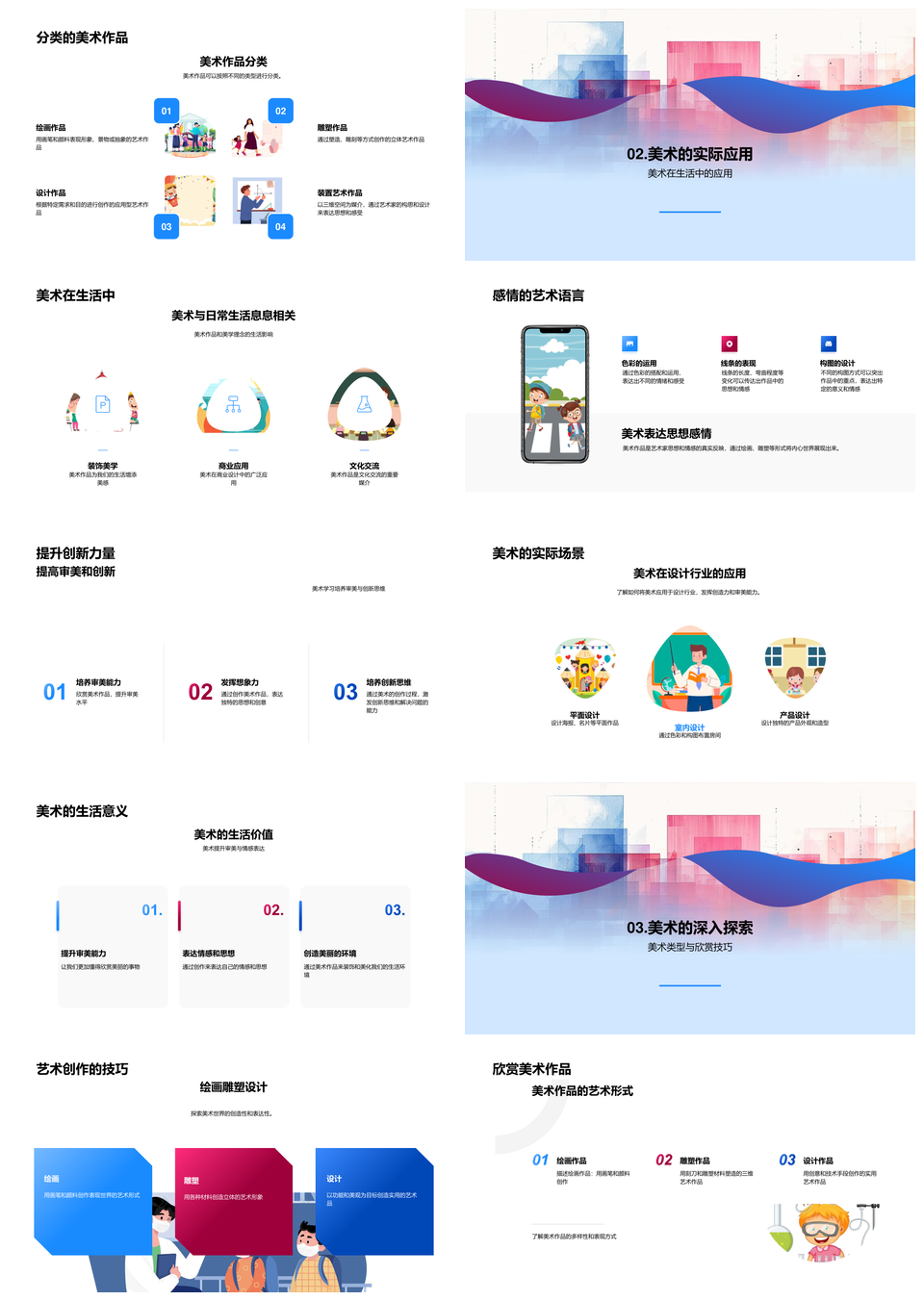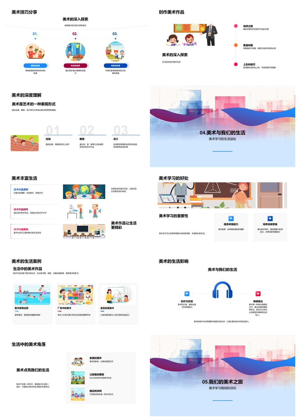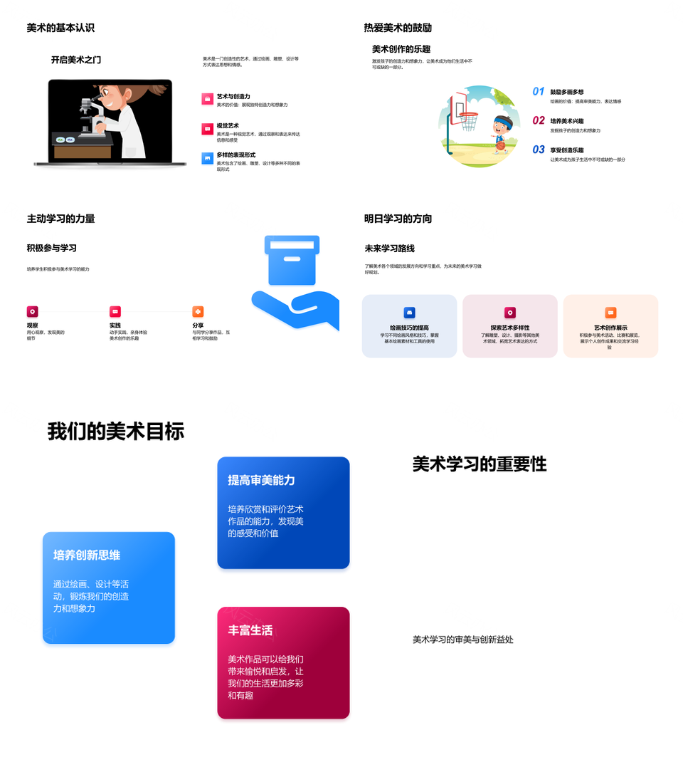 美术教学技法生活应用审美创新思维绘画雕塑PPT模板