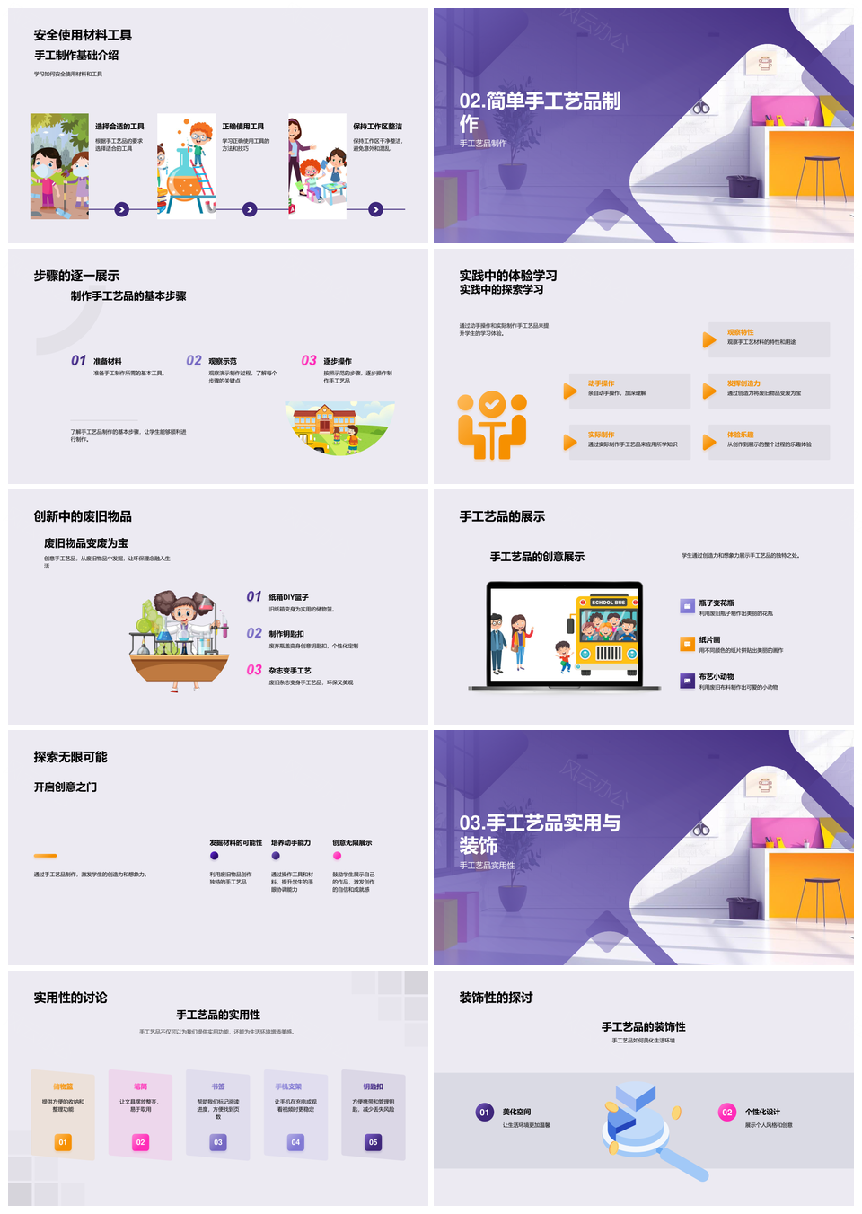 风云办公提供的小学手工艺品工具材料创意教学PPT模板,下载格式为pptx,一共33页,作品中文字及图均可以修改和编辑,图片更改请在作品中右键图片并更换,文字修改请直接点击文字进行修改。