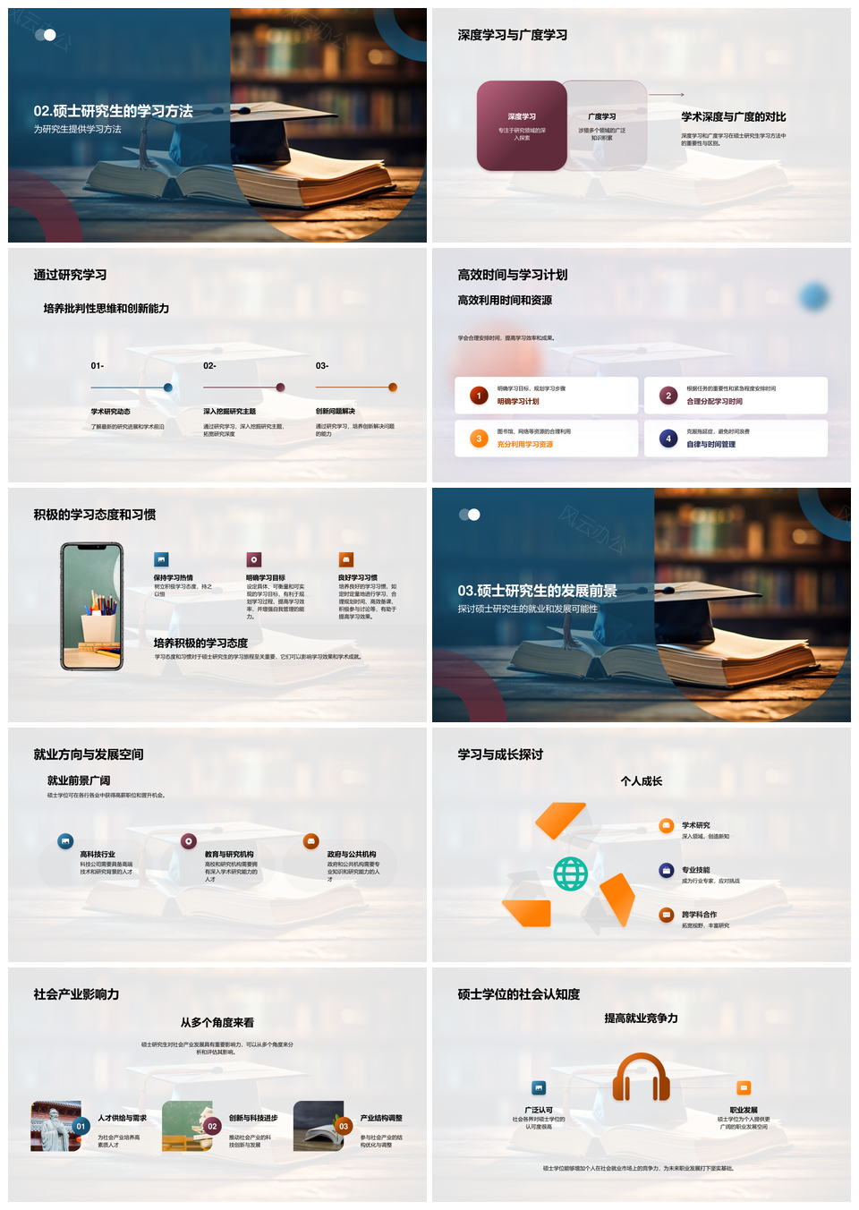 硕士学业规划研究能力提升与毕业发展指南PPT模板推荐