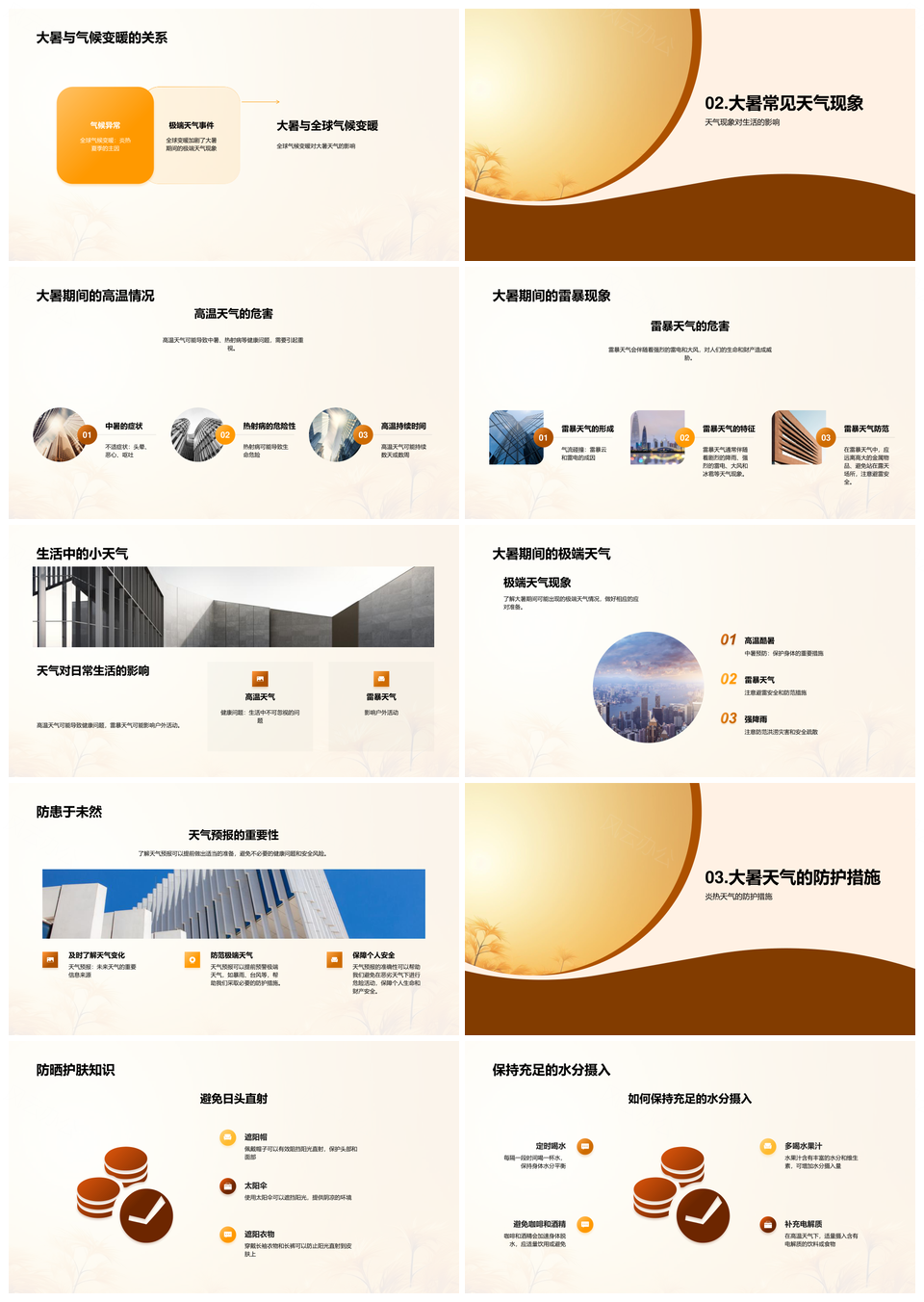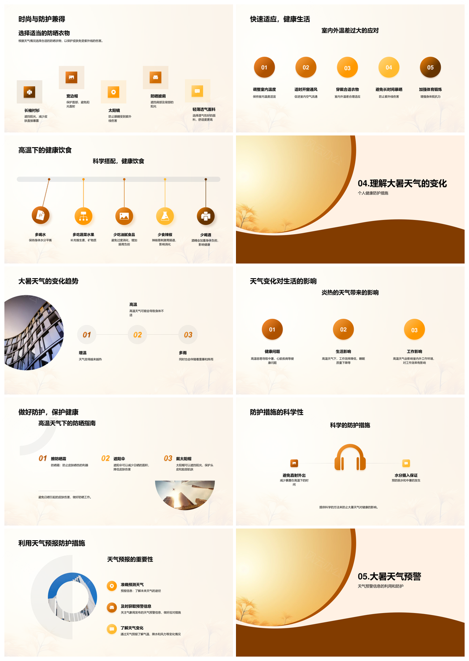 风云办公提供的大暑气象局预警极端高温防热射病措施PPT模板,下载格式为pptx,一共33页,作品中文字及图均可以修改和编辑,图片更改请在作品中右键图片并更换,文字修改请直接点击文字进行修改。