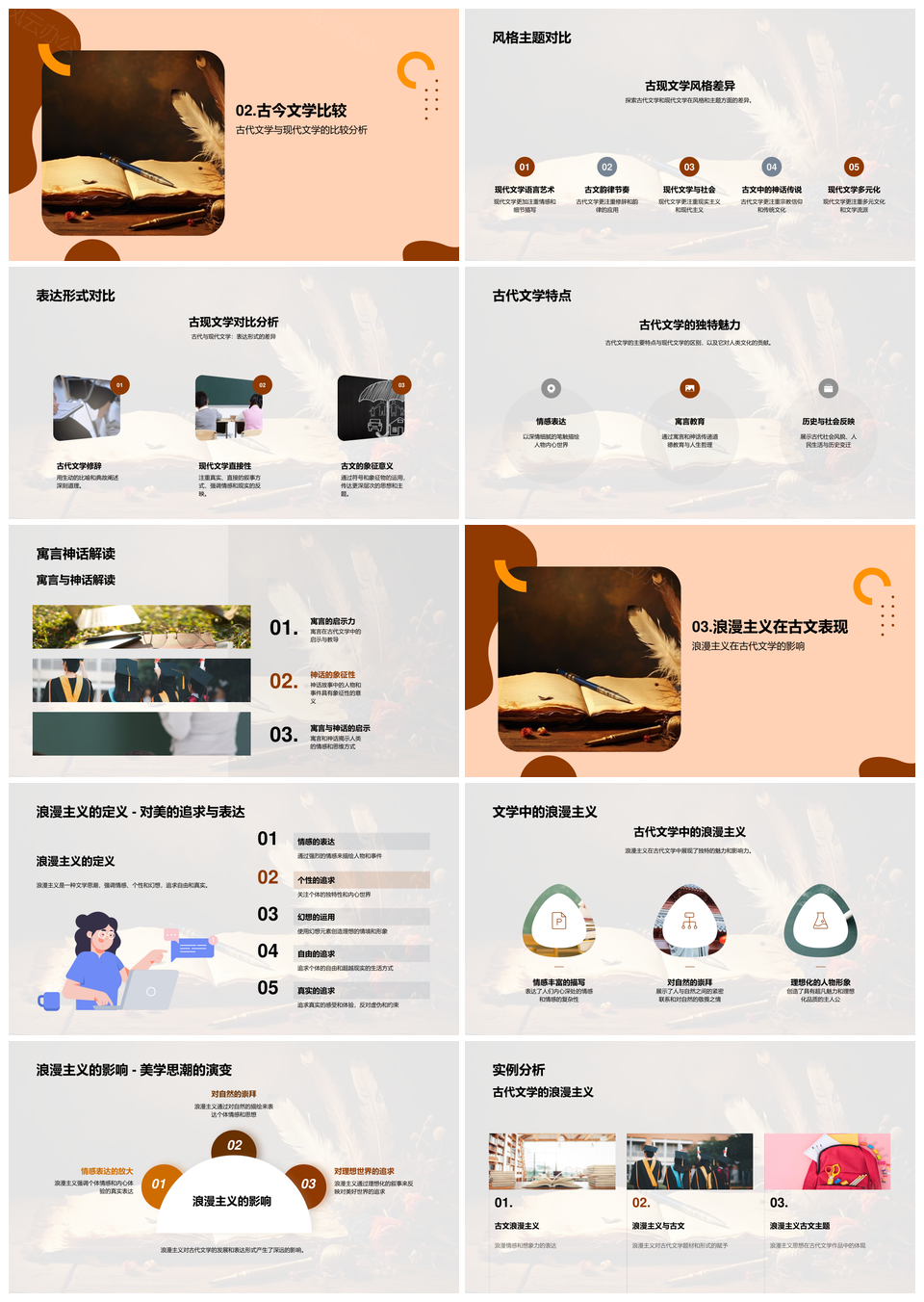 古代中世纪现代文学艺术设计元素风格表达关系PPT模板