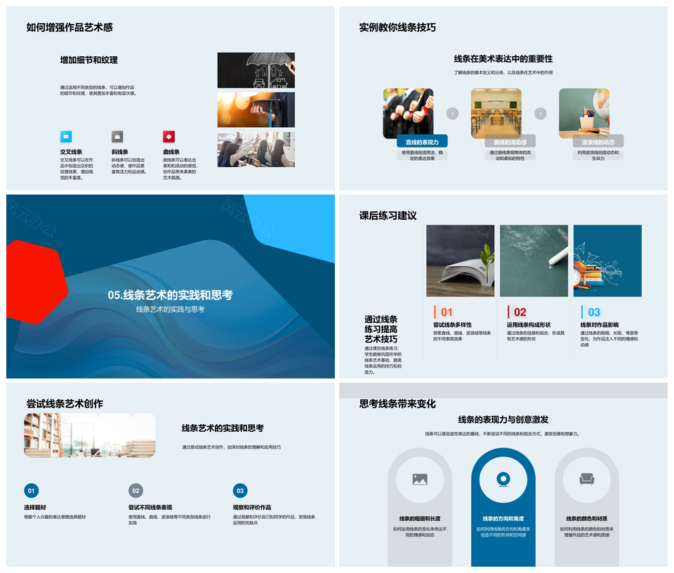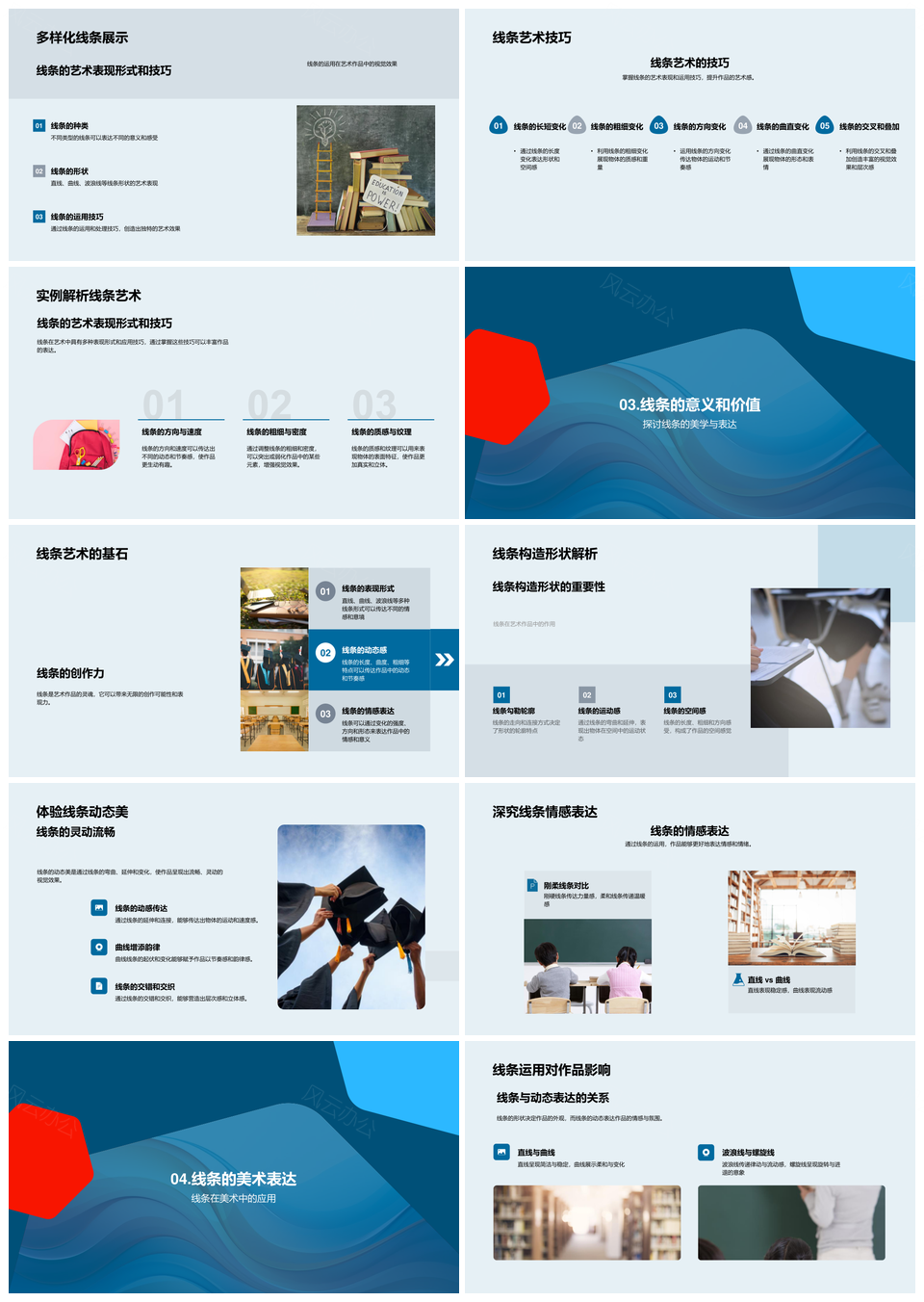 风云办公提供的线条艺术教学技法情感抽象表现PPT模板,下载格式为pptx,一共24页,作品中文字及图均可以修改和编辑,图片更改请在作品中右键图片并更换,文字修改请直接点击文字进行修改。