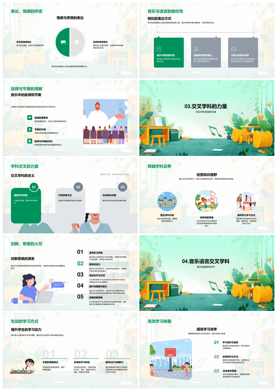 风云办公提供的音乐跨学科语言教学创新课件模板,下载格式为pptx,一共23页,作品中文字及图均可以修改和编辑,图片更改请在作品中右键图片并更换,文字修改请直接点击文字进行修改。